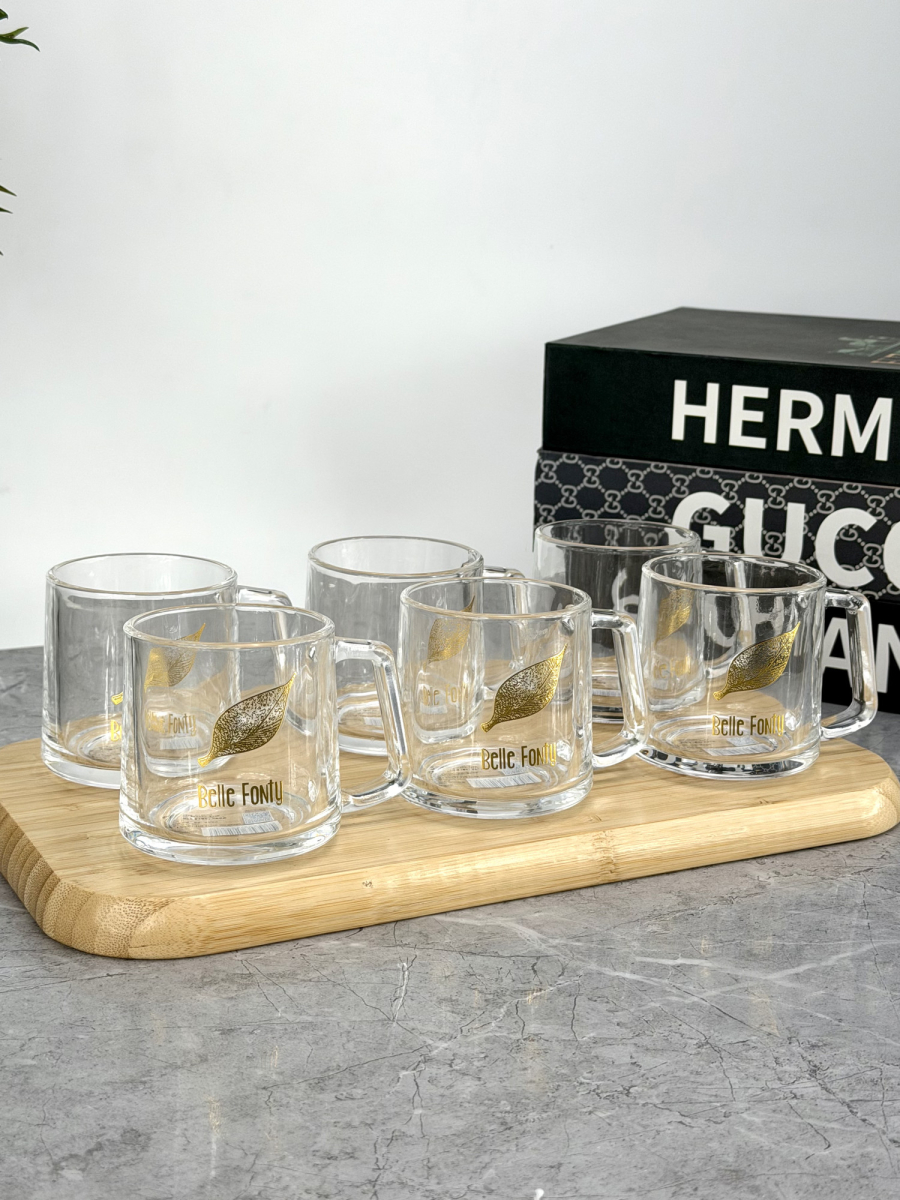 سيت 6 اكوب زجاج اصلي ورد ذهبي B