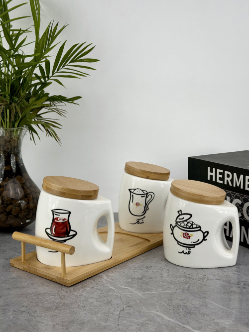 سيت بهارات رباعي سيراميك مع ستاند بامبو 4061