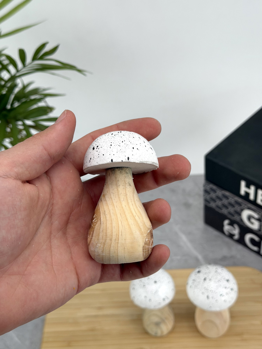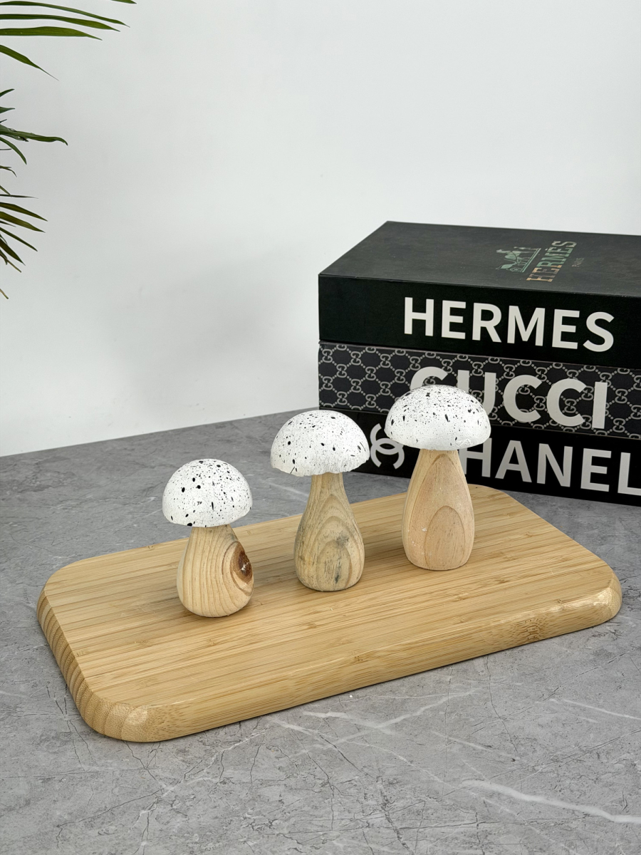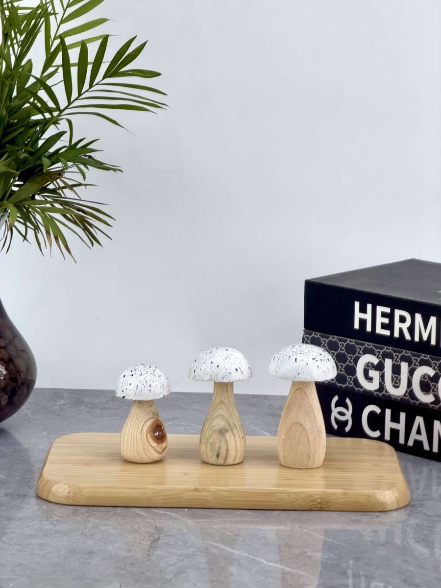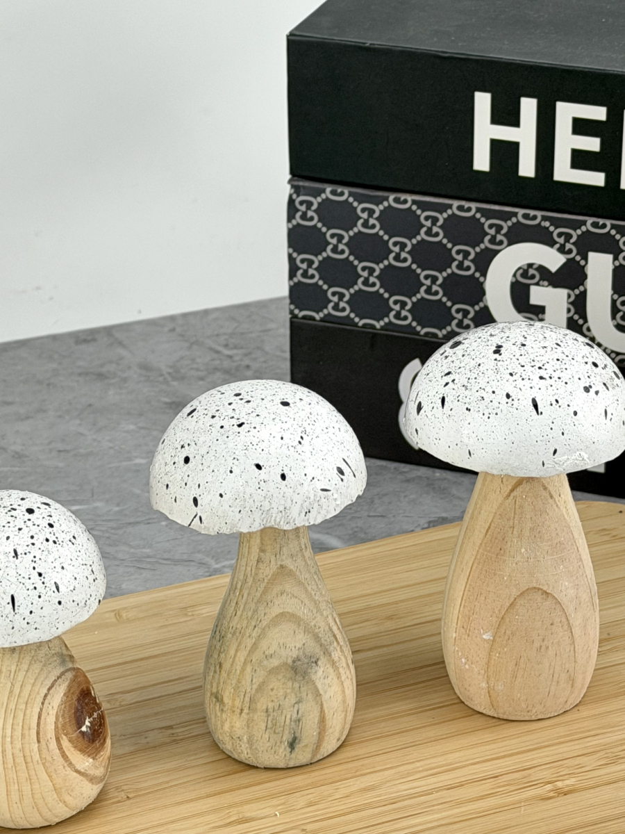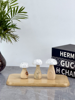 ديكور فطر ثلاثي خشبي ابيض