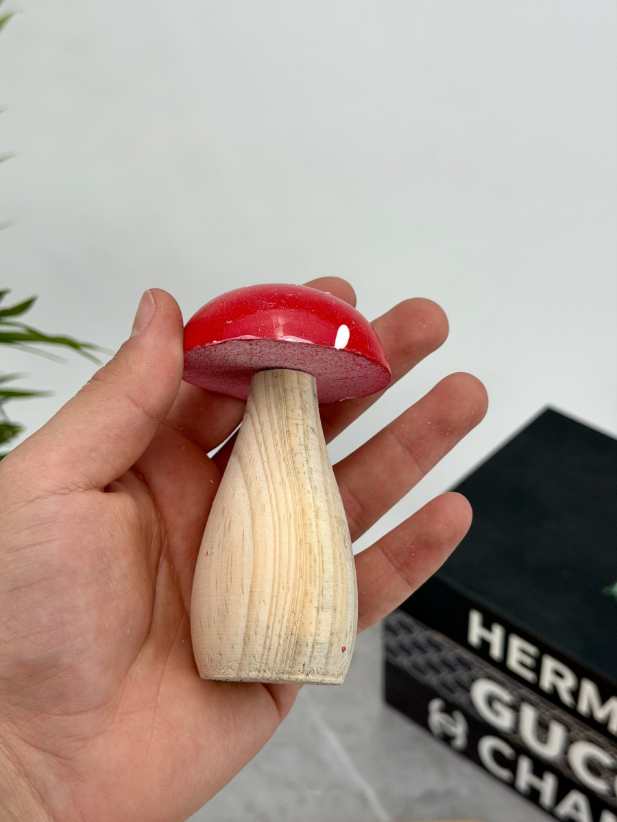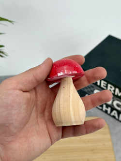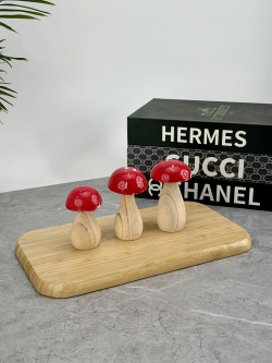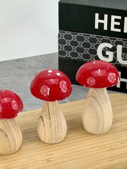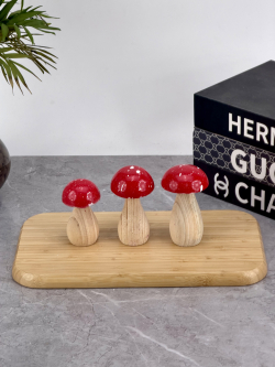 ديكور فطر ثلاثي خشبي احمر