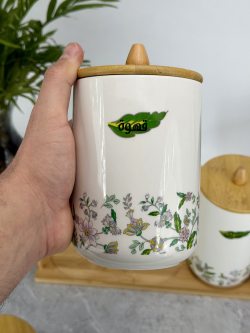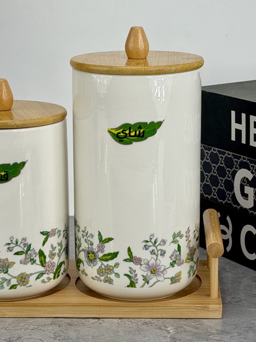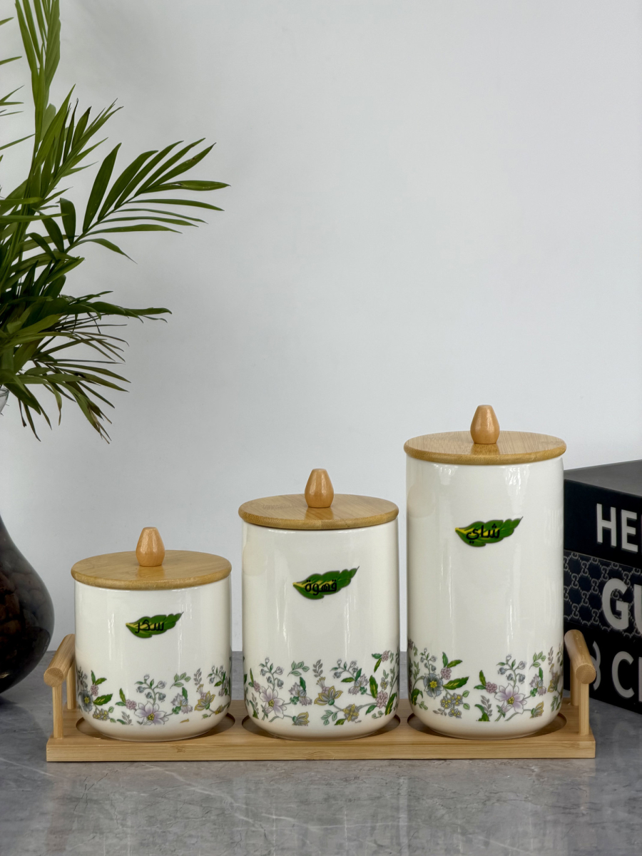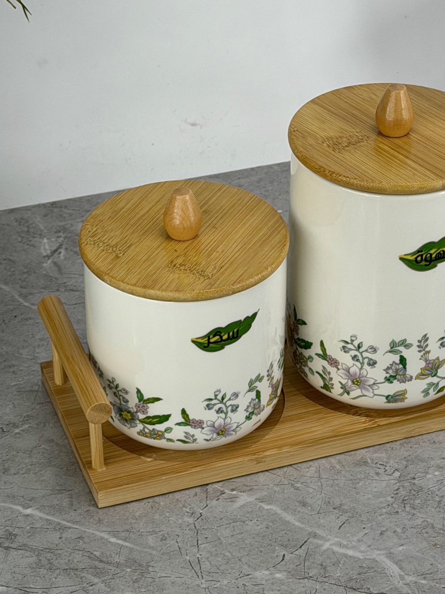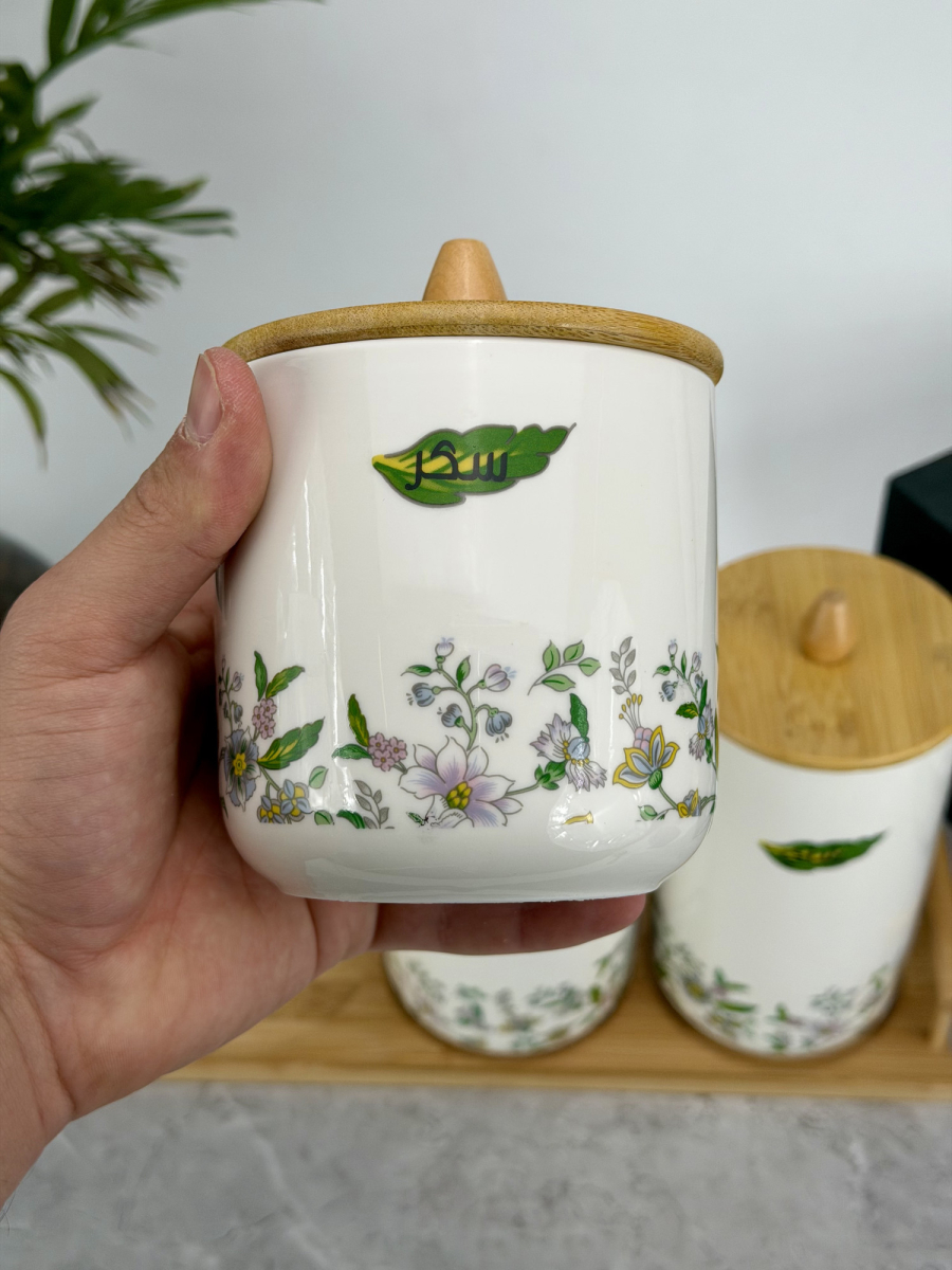 سيت سكر وشايي ثلاثي ابيض زجاج بايريكس قبق بامبو B