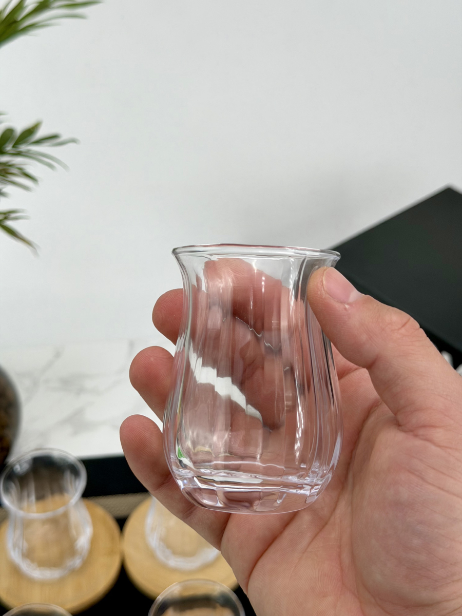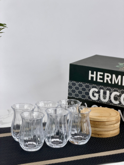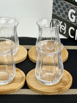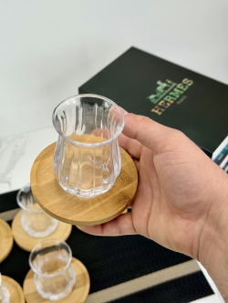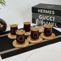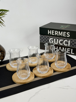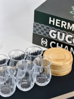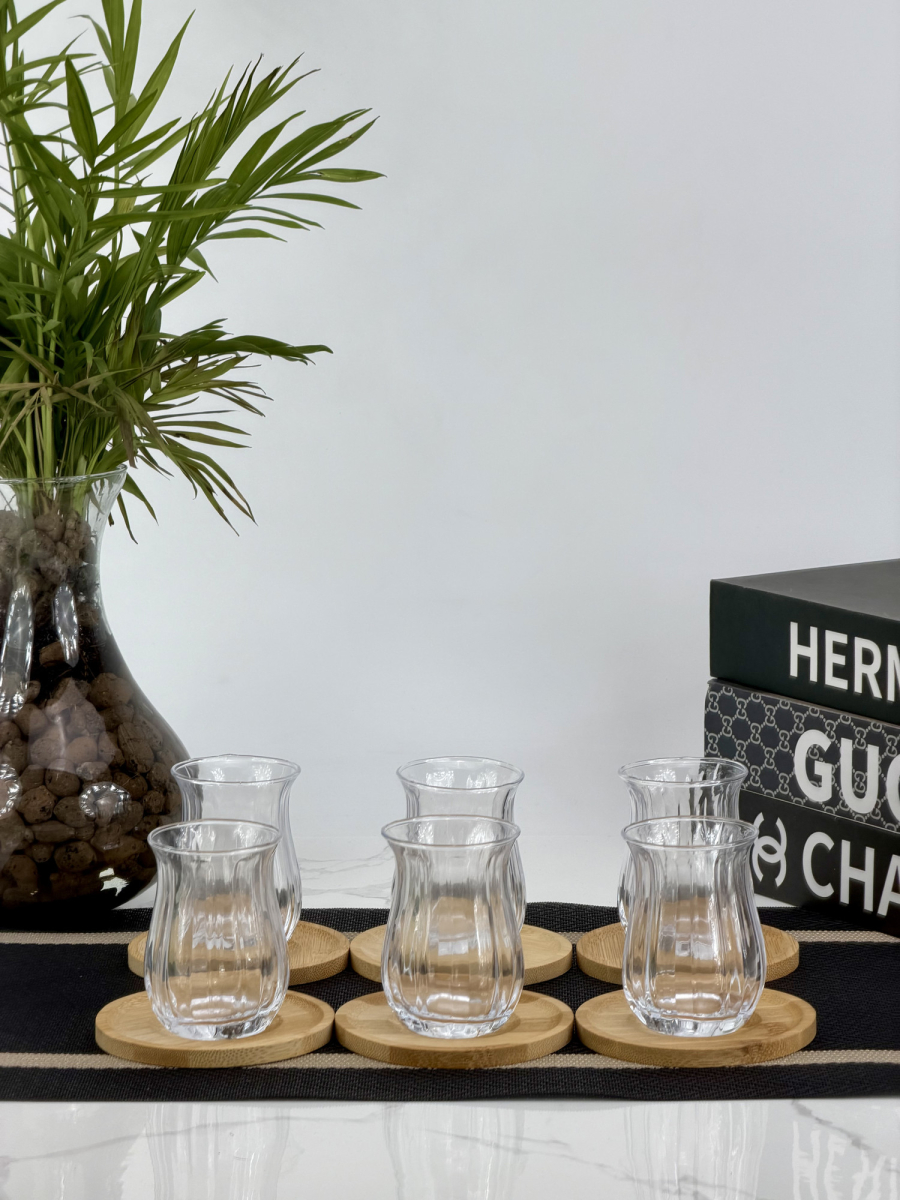 سيت 6 استكاين زجاج مع صحن دائري بامبو
