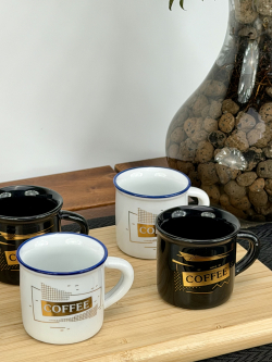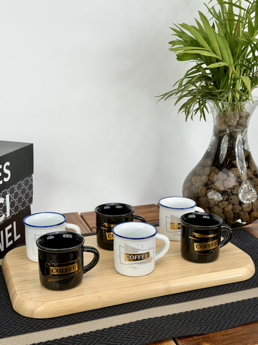 سيت اكوب صغير سيراميك 6 عدد اسود و ابيض