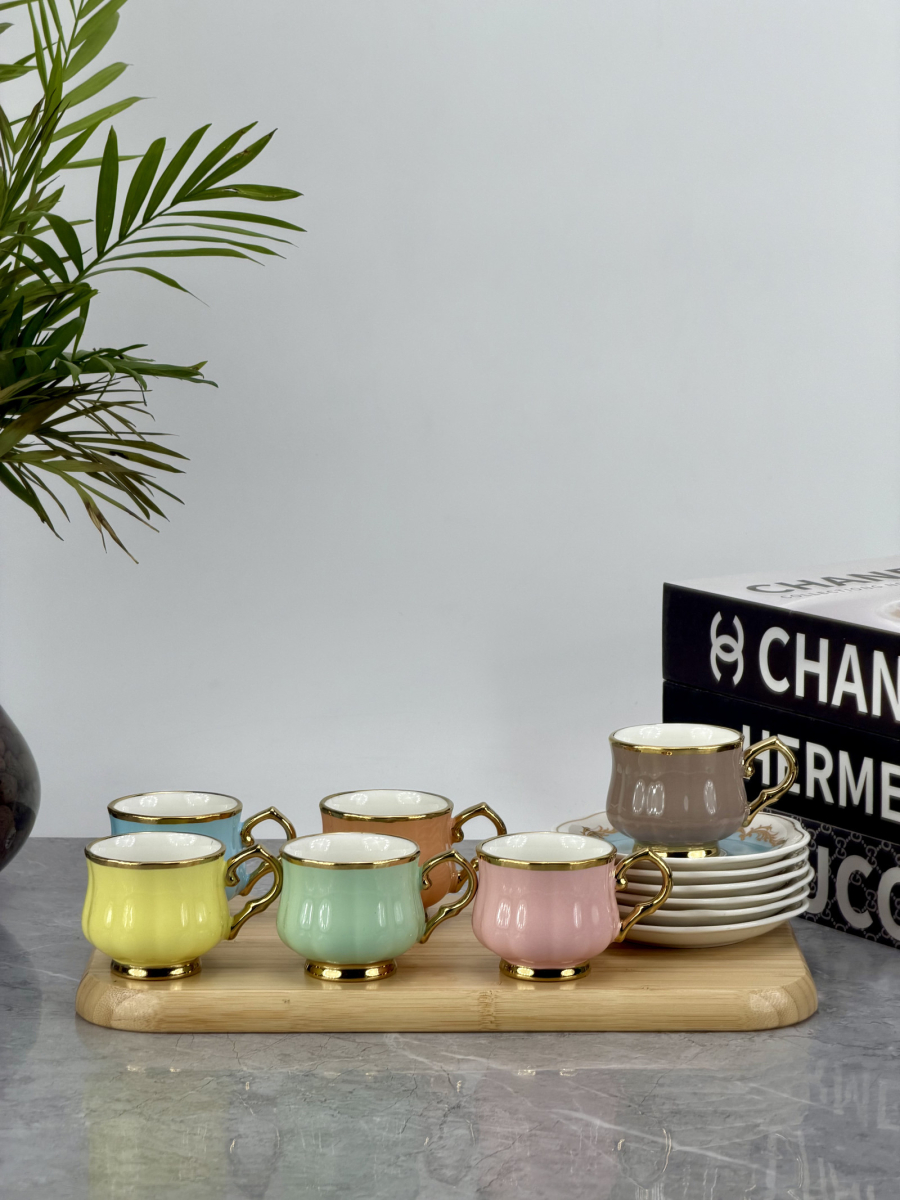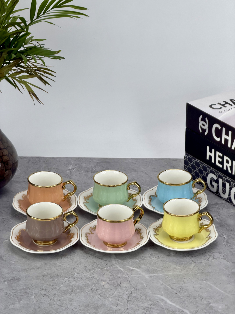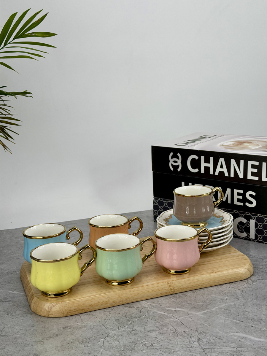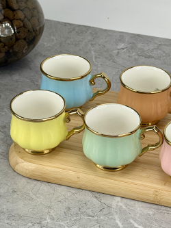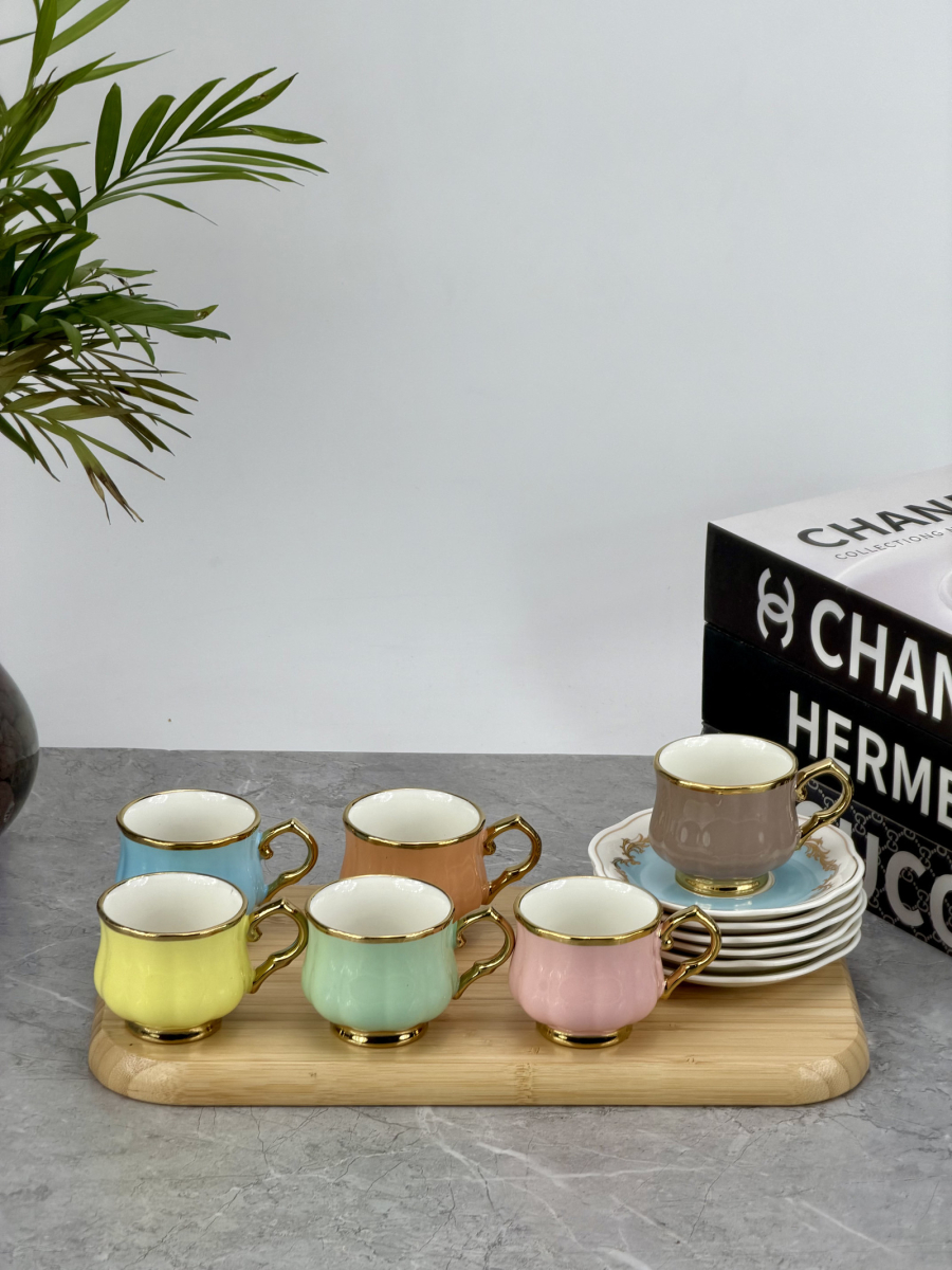سيت 6 اكوب و صحن سيراميك ملون DJ-42