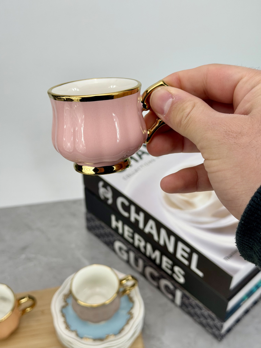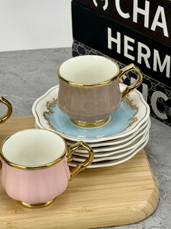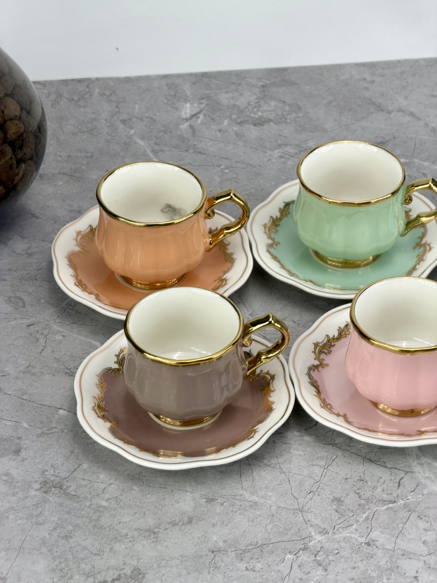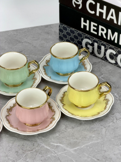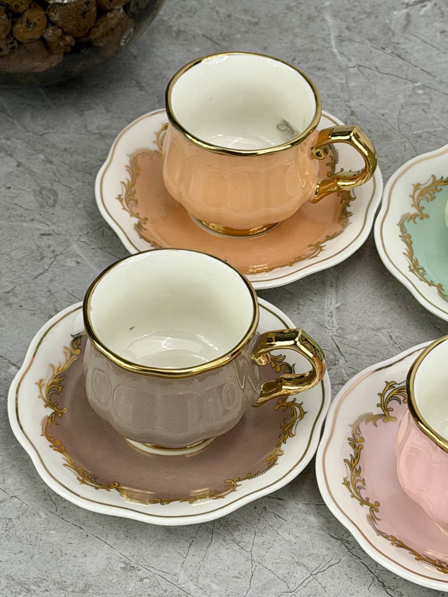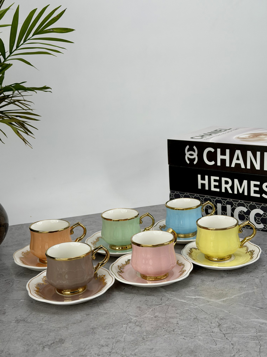 سيت 6 اكوب و صحن سيراميك ملون DJ-42