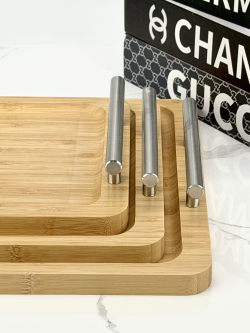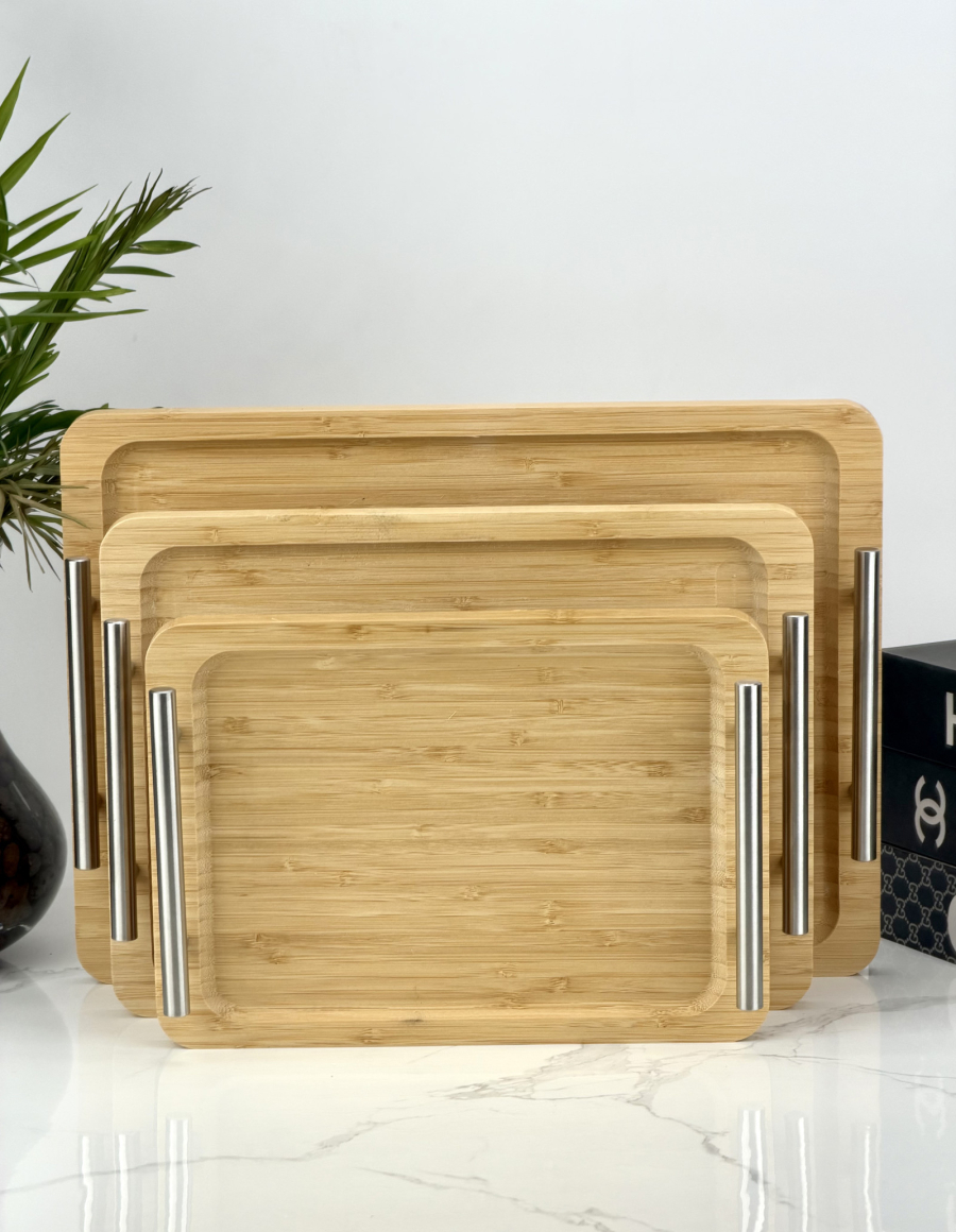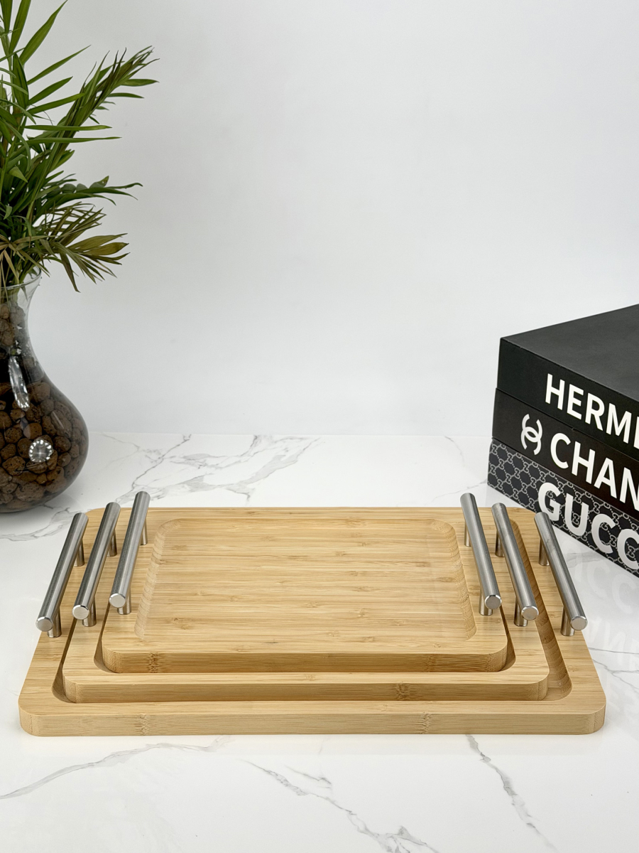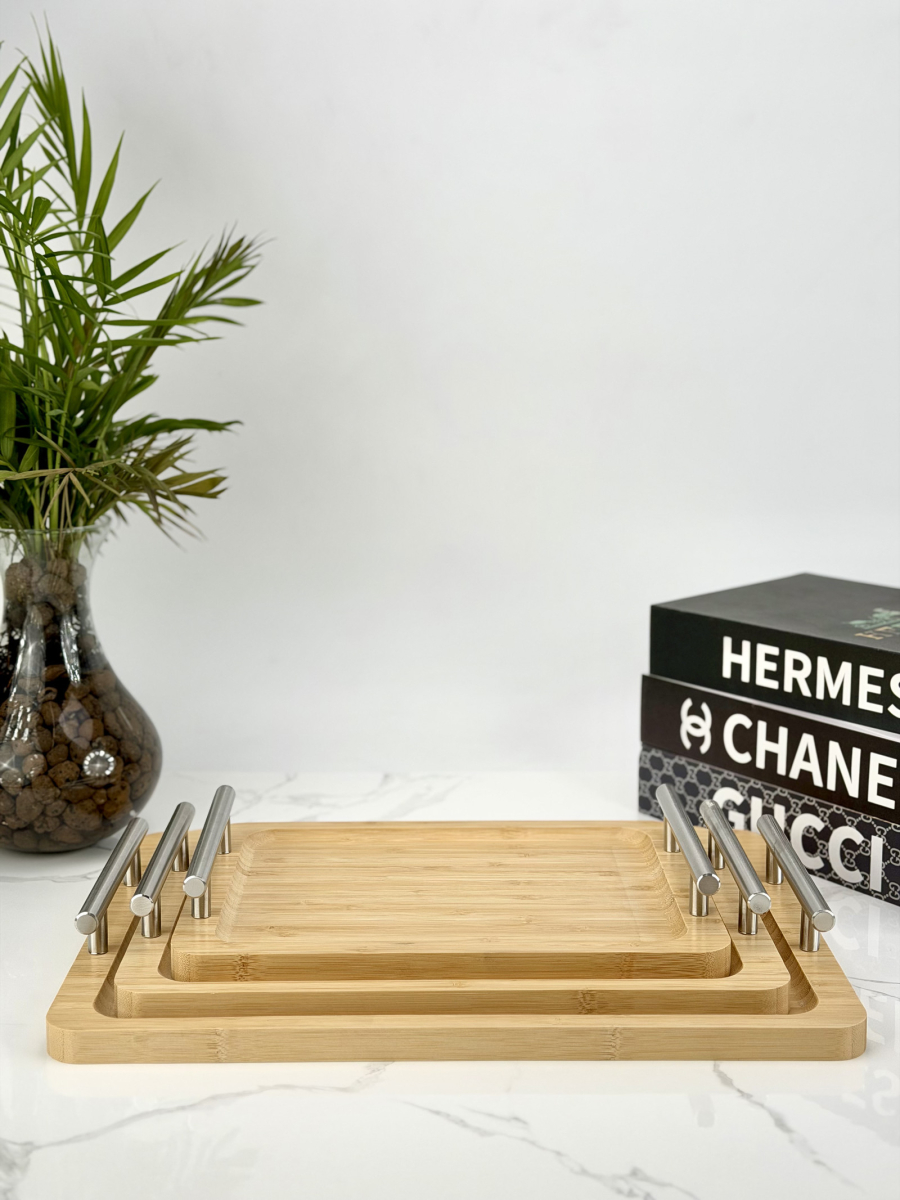 طقم صيني بامبو مستطيل ثلاثي يد فضي