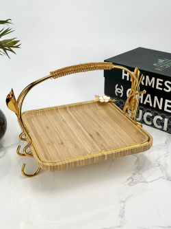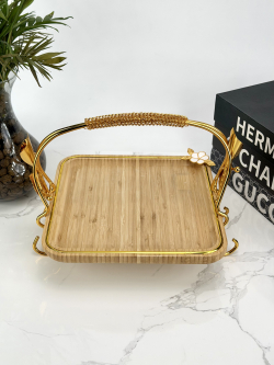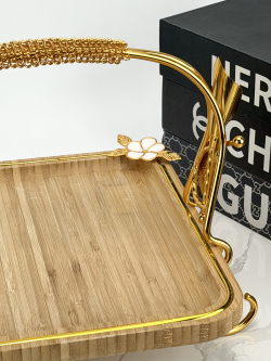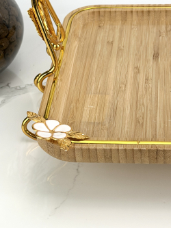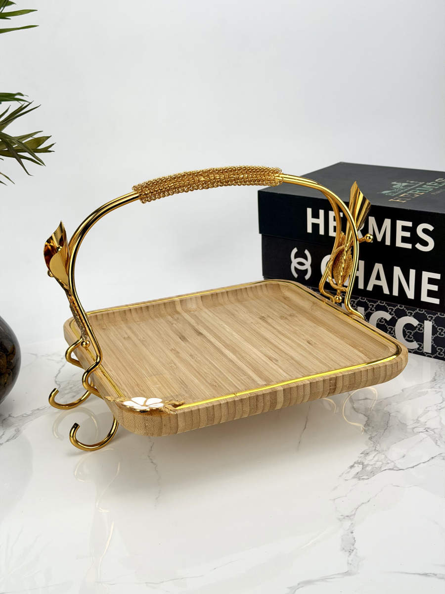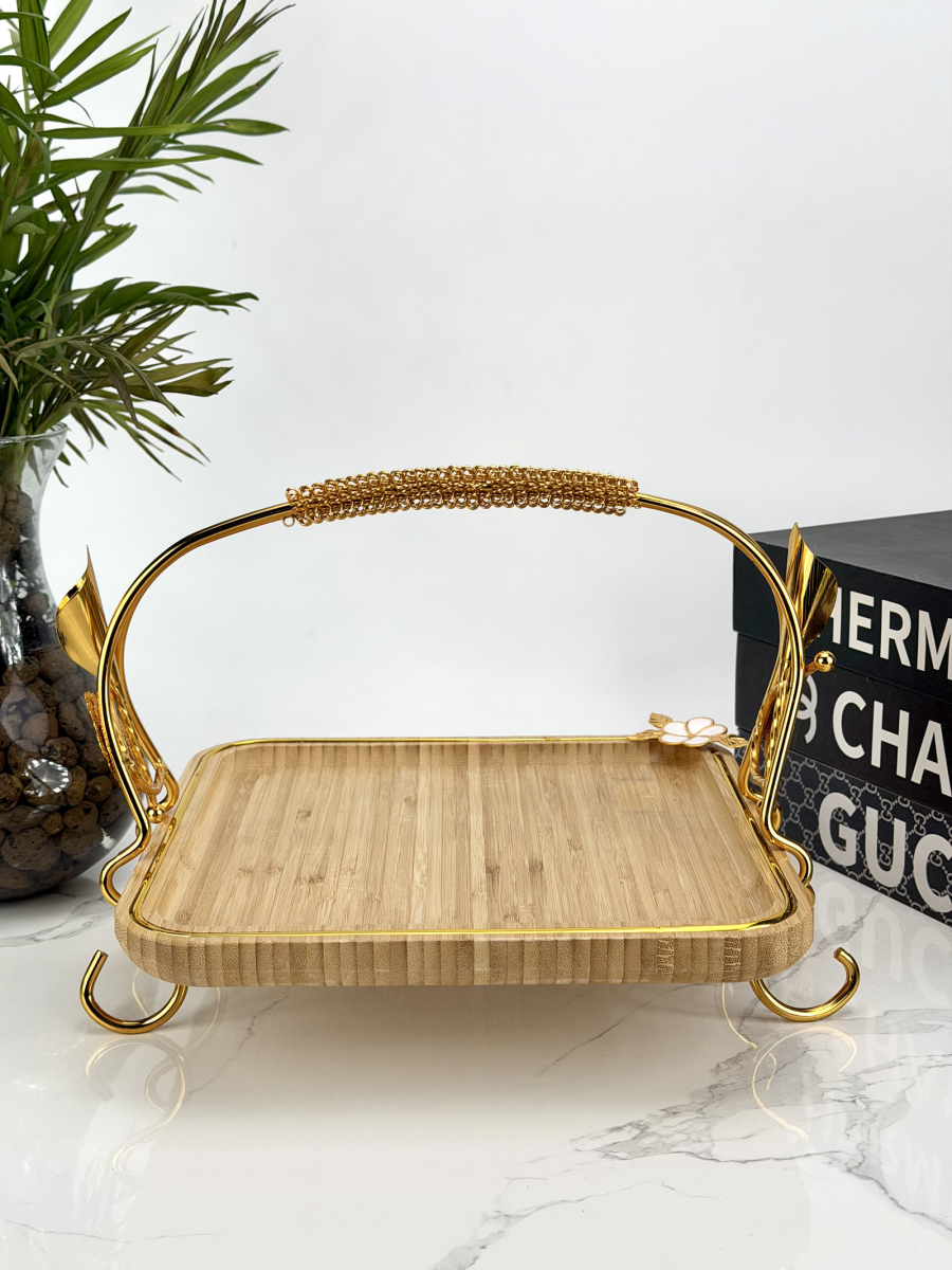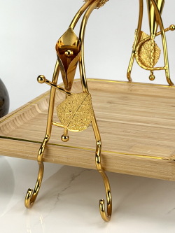 سيت صيني بامبو قهوائي مستطيل ثلاثي يد ذهبي