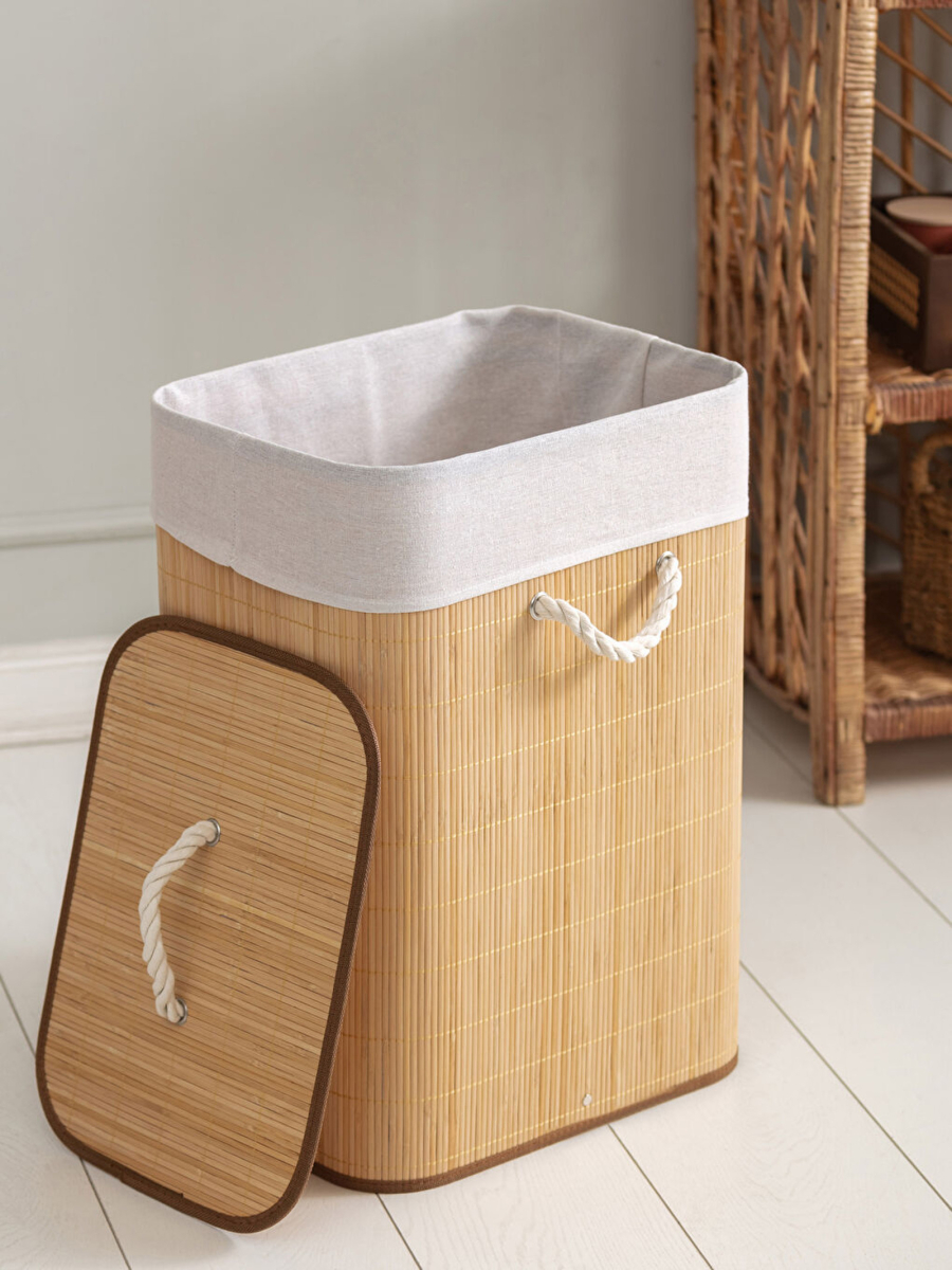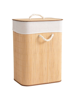 سلة ملابس كبير اطار خشب بامبو مربع 50سم ابو قبق