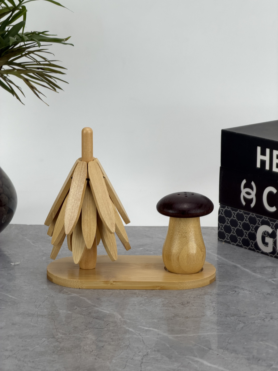 سيت 6 استكاين زجاج مع صحن دائري بامبو