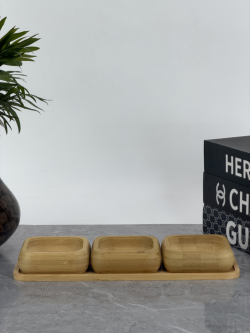 سيت صيني بامبو قهوائي مستطيل ثلاثي يد ذهبي