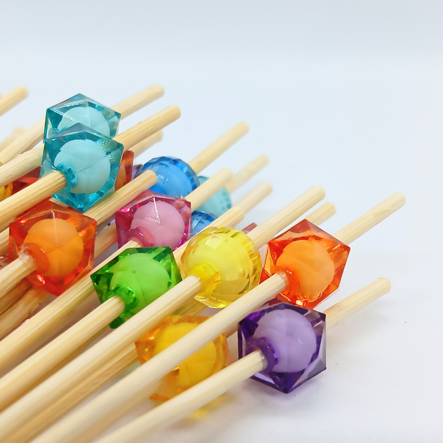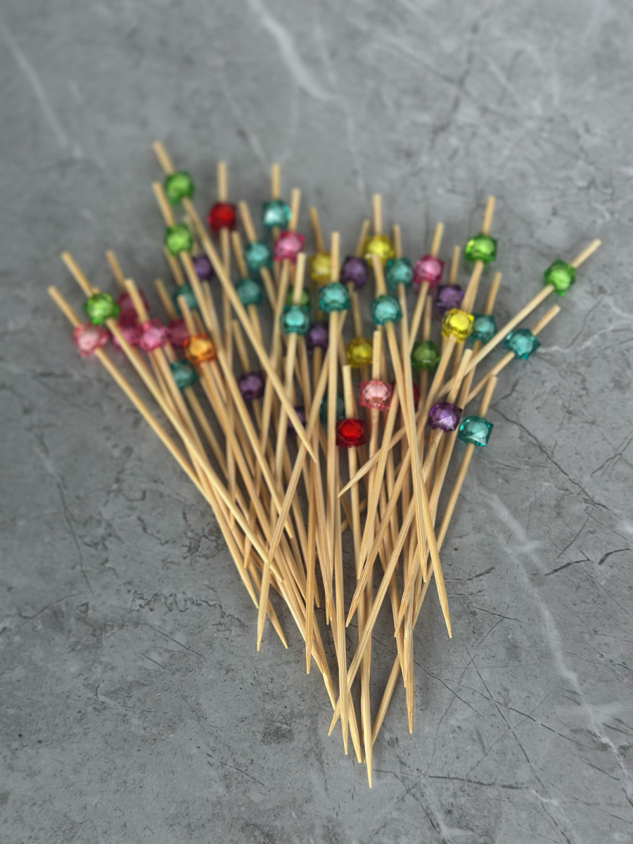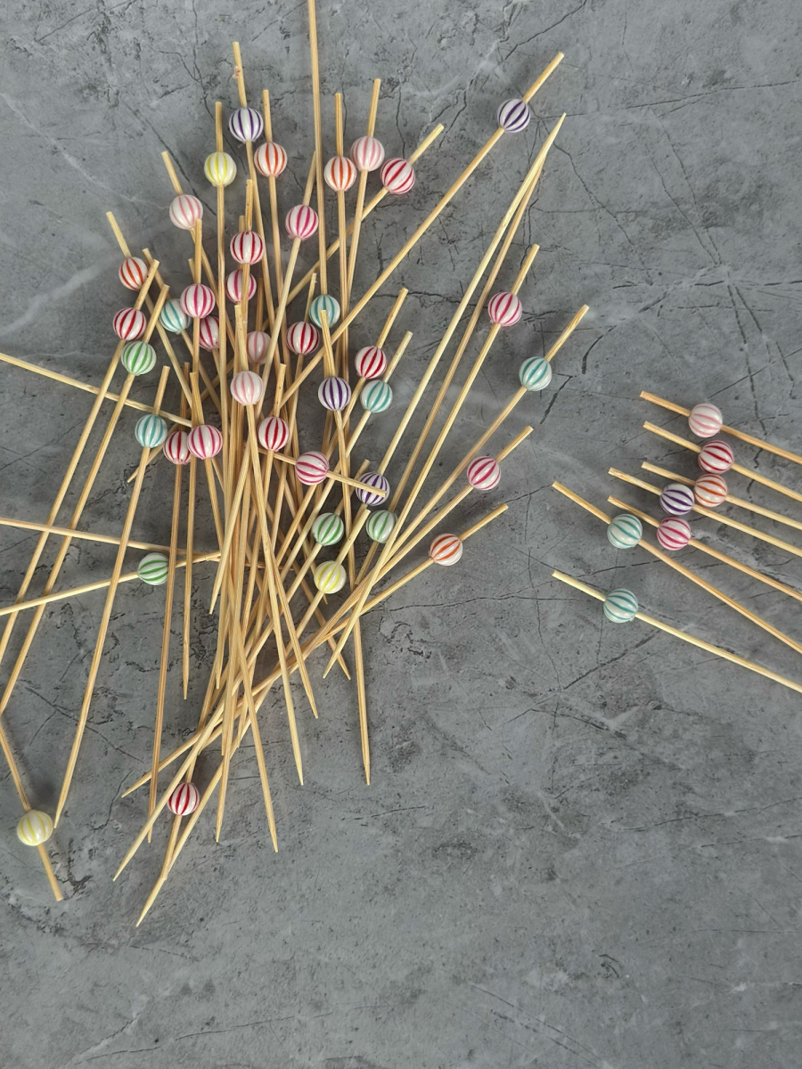 اعواد تمر وحلى خشب بمقبض خرز ملون 50 عدد مشکل