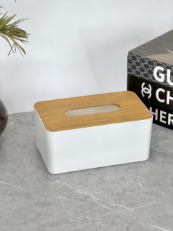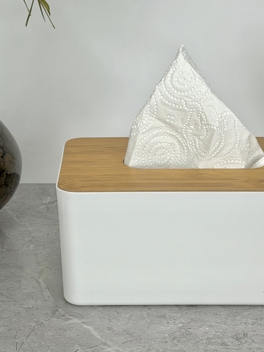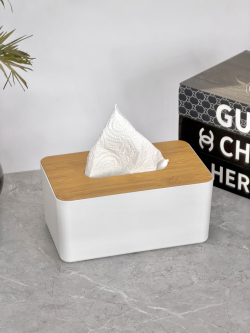علبة كلينس ابيض قبق خشبي مستطيل سادة