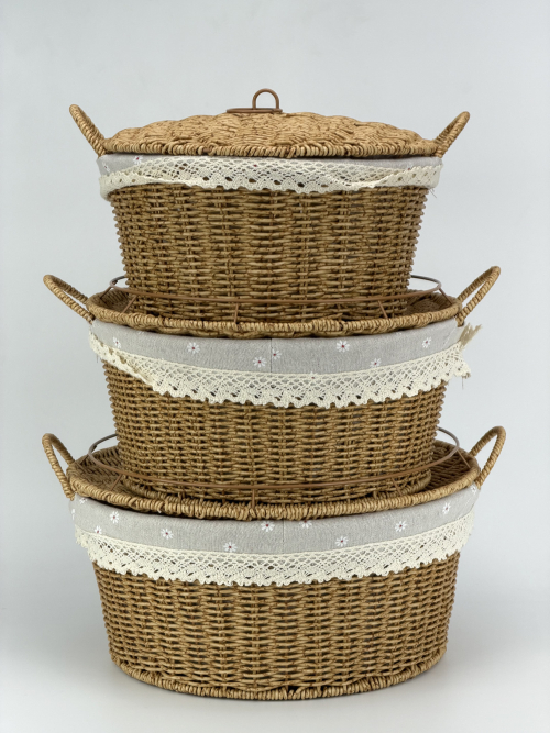 طقم سلة خبز 3 قطعة كبير دائري بيجي