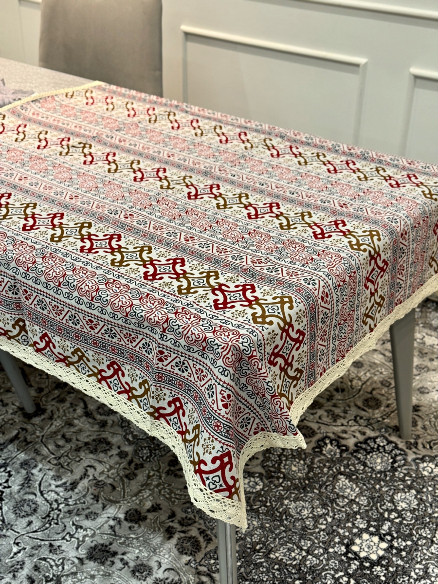 غلاف طاولە 140x140سم زخرفە اطار نقش
