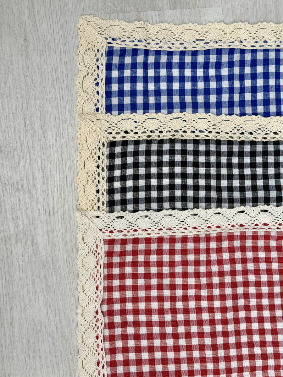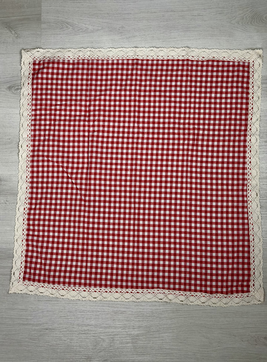 شرشف كاروهات مربع حافات دانتيل قياس ٨٠سم ب٨٠سم