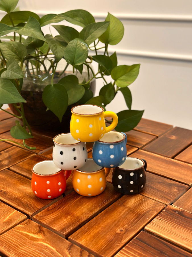 سیت فنجان 6 عدد سیرامیک ملون صغير نقطة