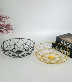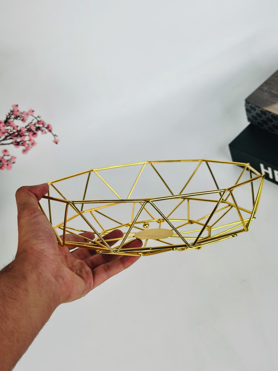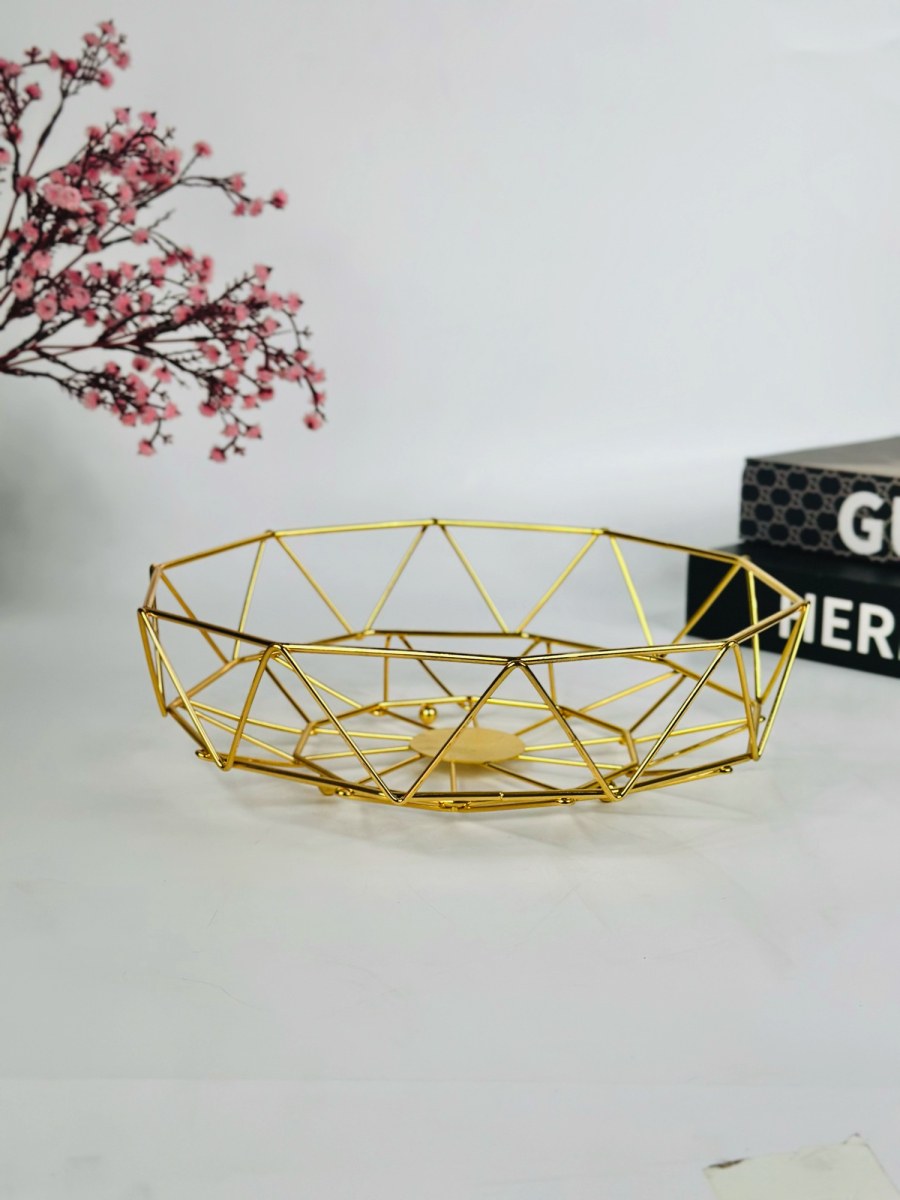 وعاء فواكه معدني سداسي ذهبي