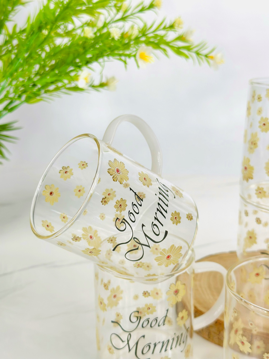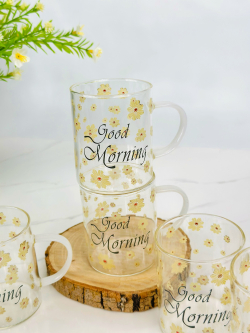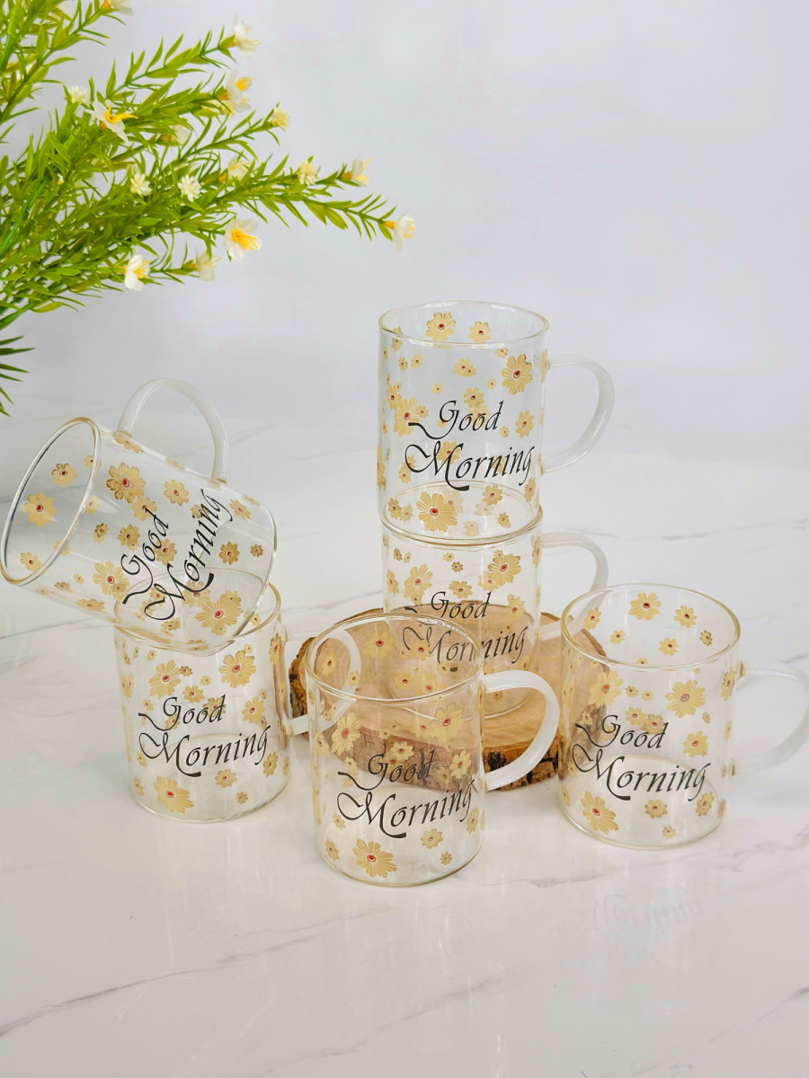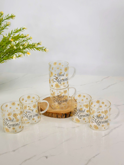 سيت 6 اكوب شايي زجاج اطار ذهبي