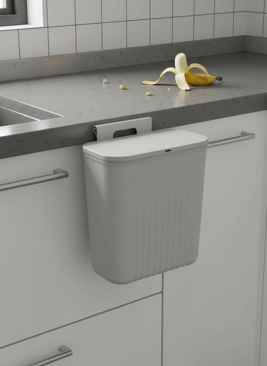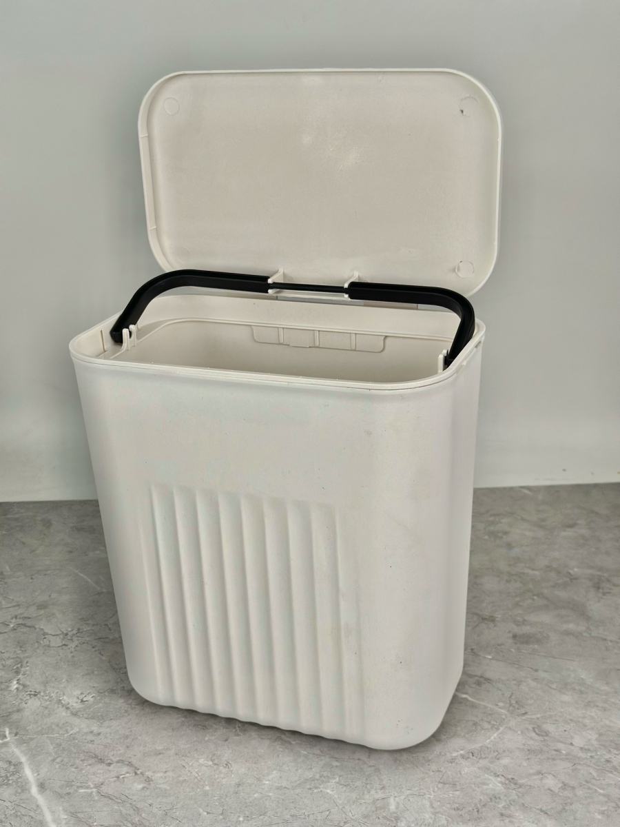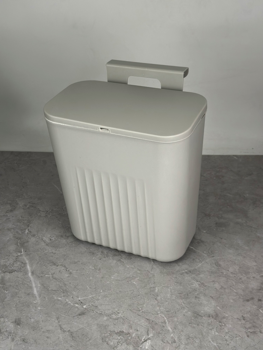 سلة قمامة بلاستيكية تثبت على الحائط للمطبخ ابيض و رصاصي