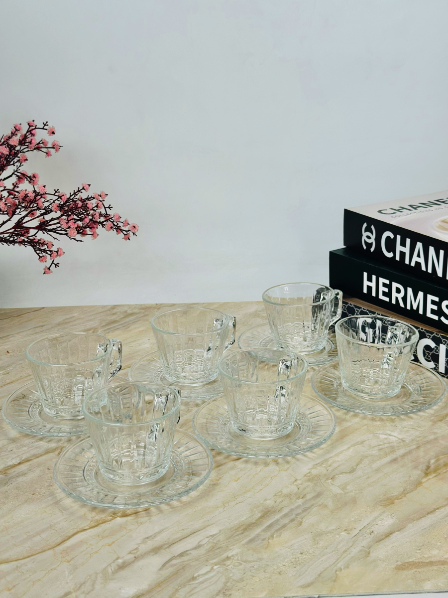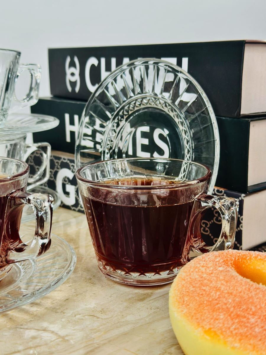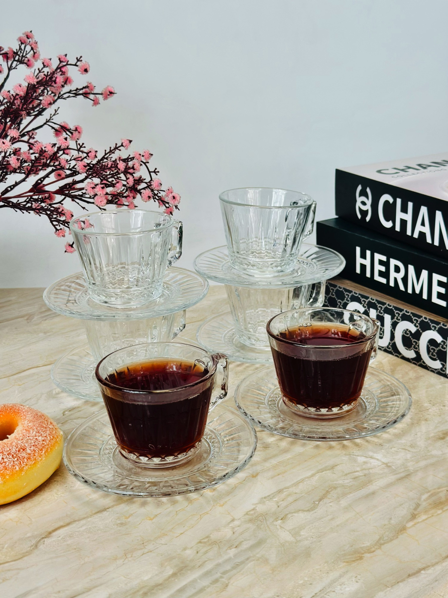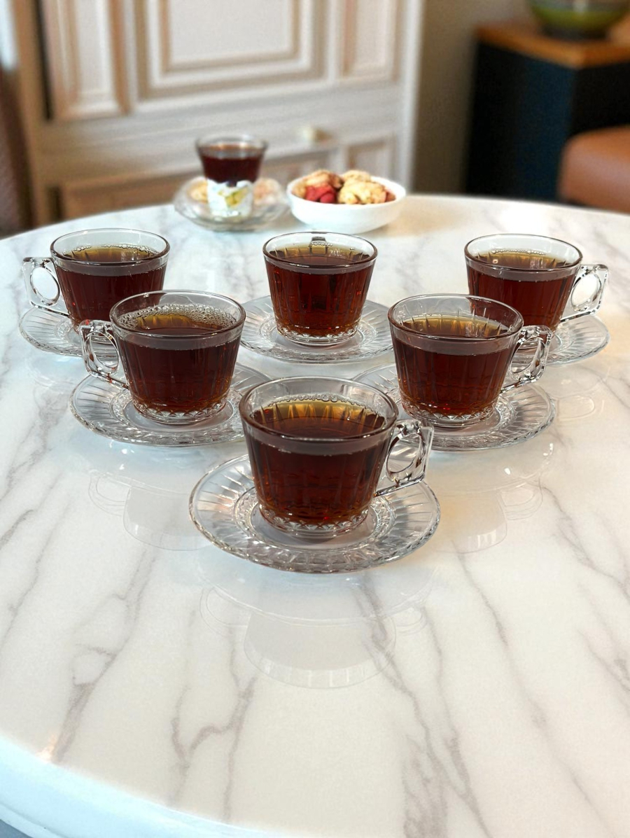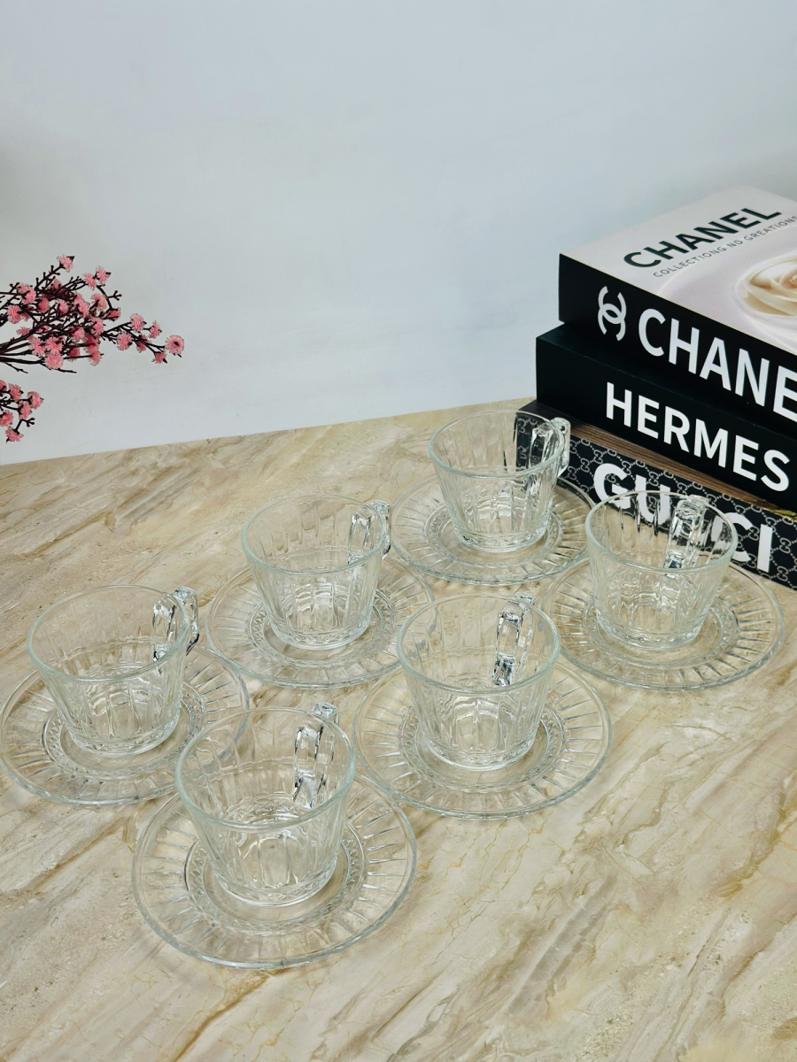 سيت 6 قطعة اكوب و صحن سیرامیک نقش ذهبي - K