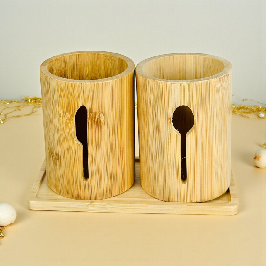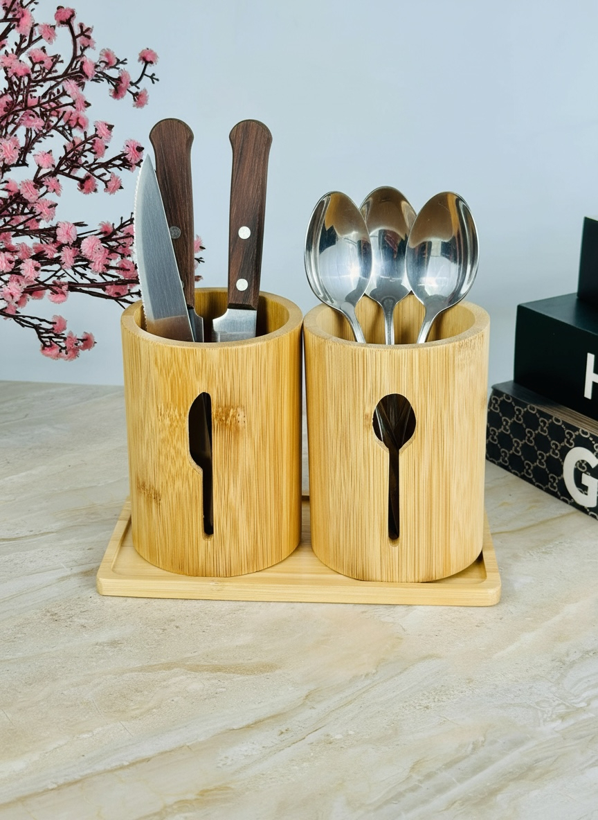 طاقم مكان ملاعق وشوكات بامبو صيني
