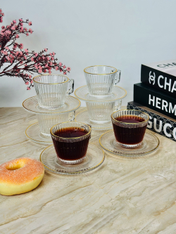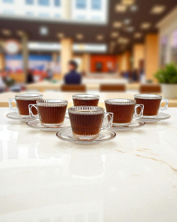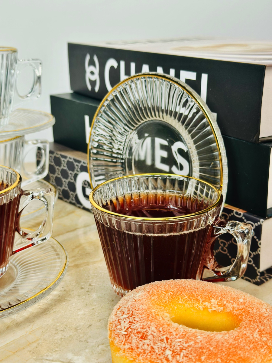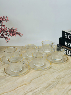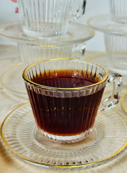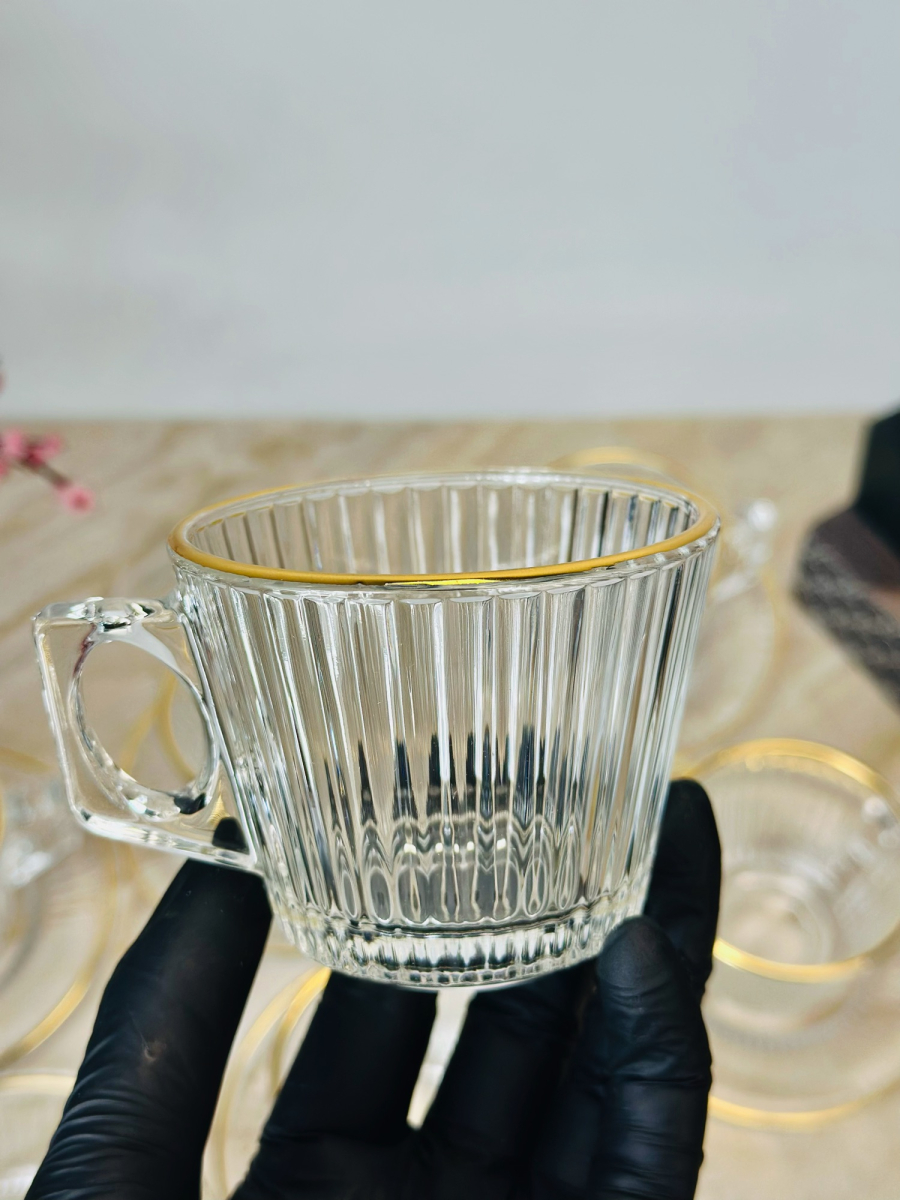سيت 6 اكوب شايي زجاج اطار ذهبي