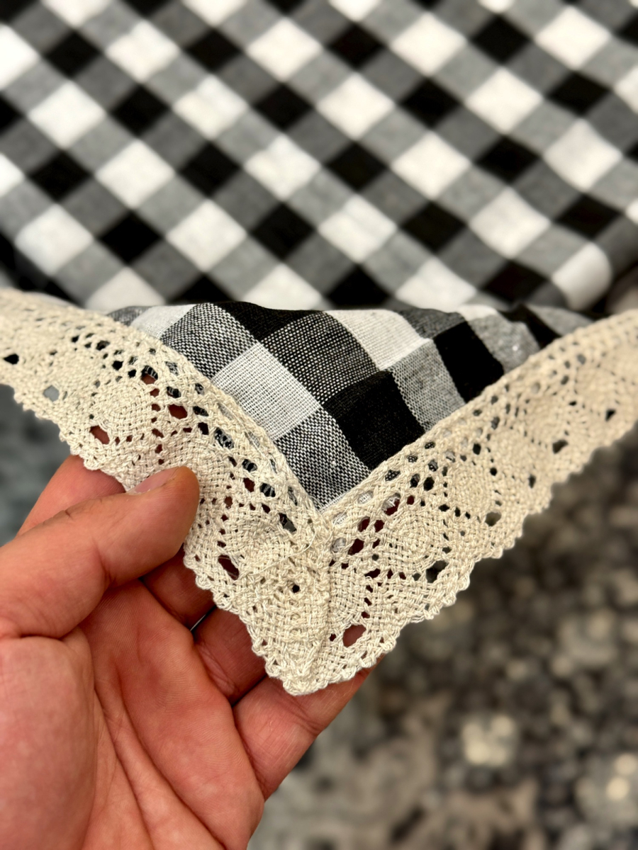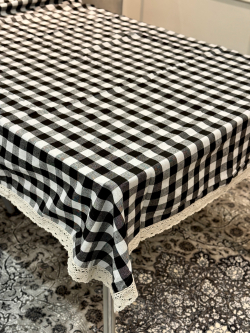 مفرش طاولە مربعات صغير اسود 170x170سم تركي