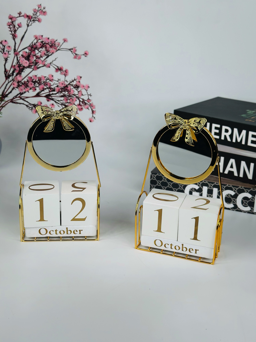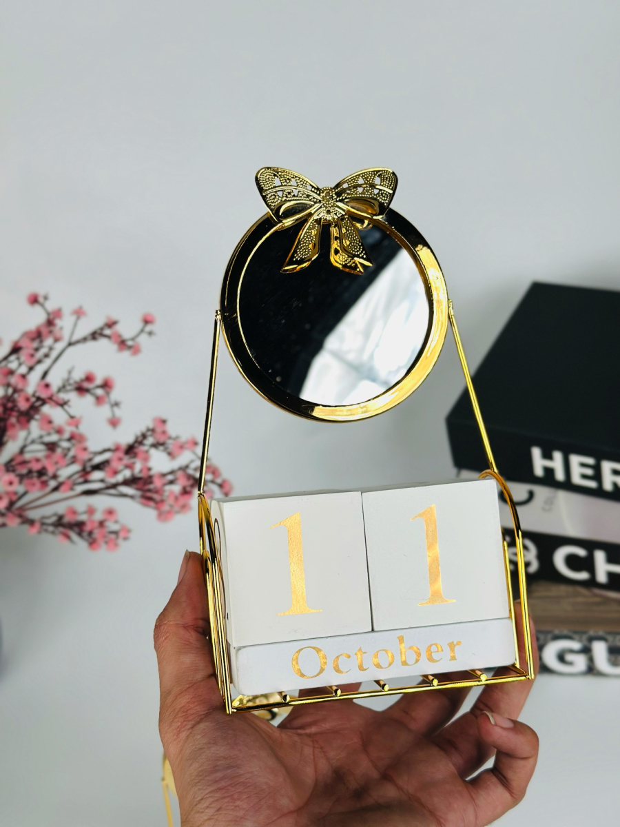 تقويم خشبي و قاعدة ذهبي مع مراية فيونكة