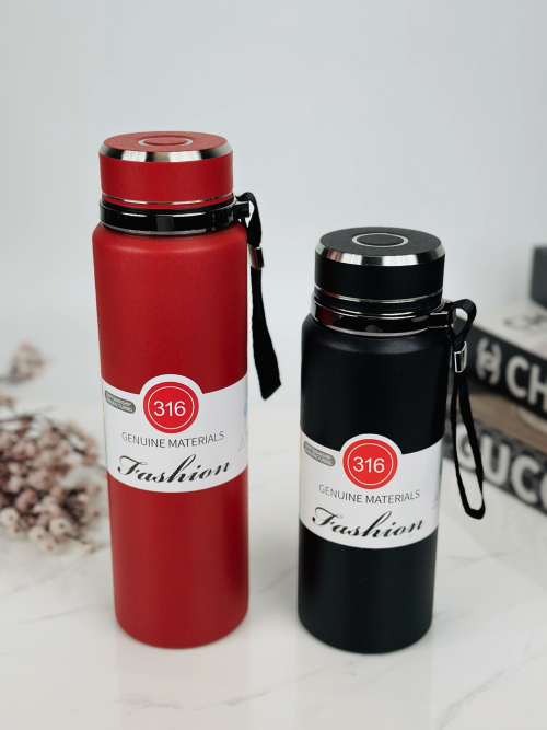 قارورة ستانلس ستيل 316 ملون مات للمياه الباردة او الساخنة سعة 1000 مل، مع مقبض حمل