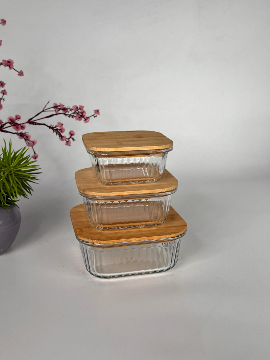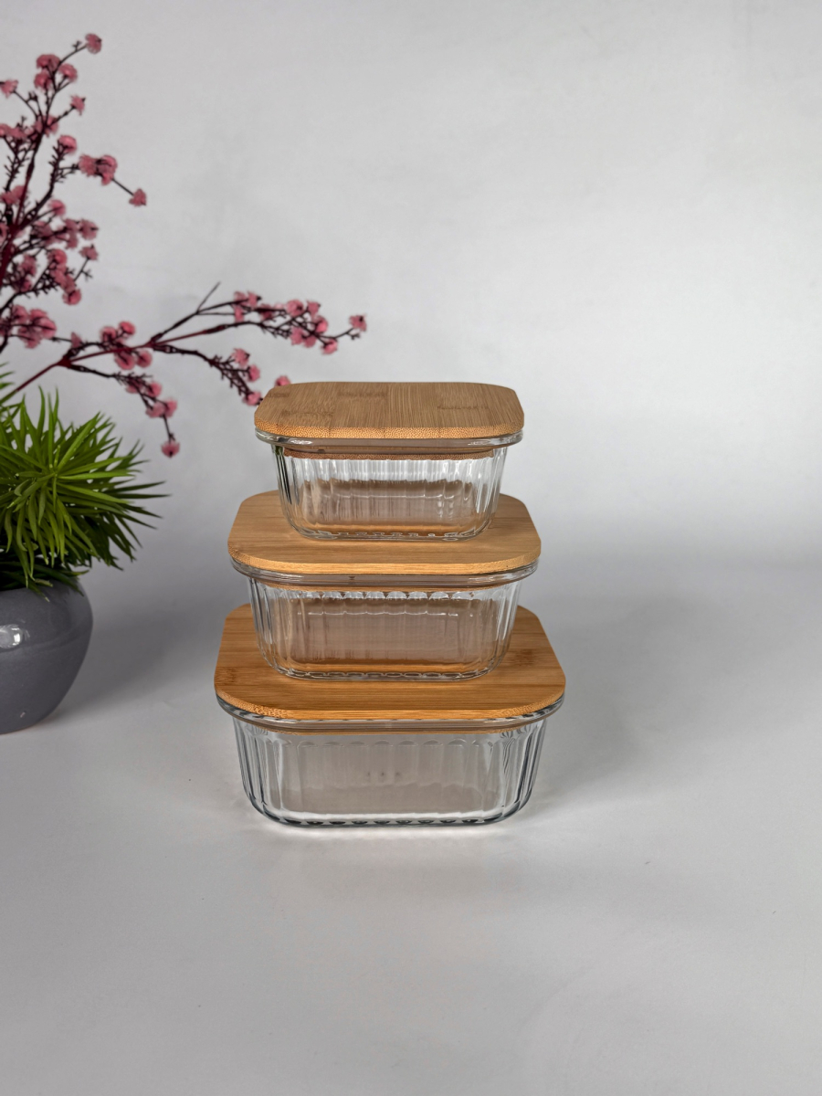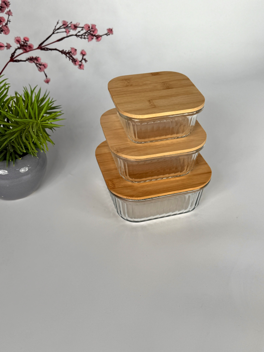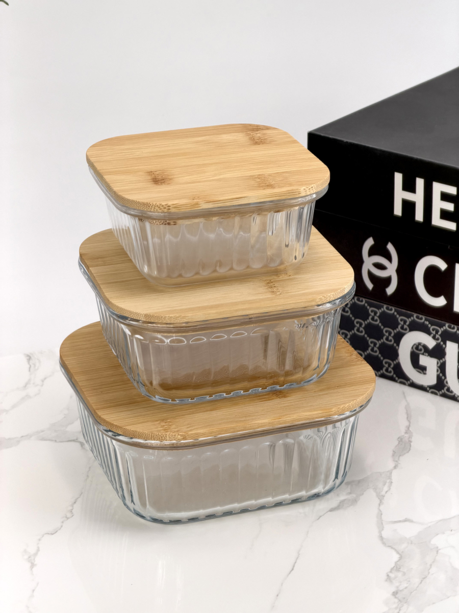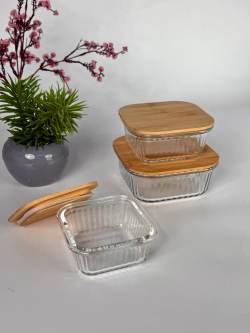 سيت حافظة زجاج مشيف قبق بامبو مربع