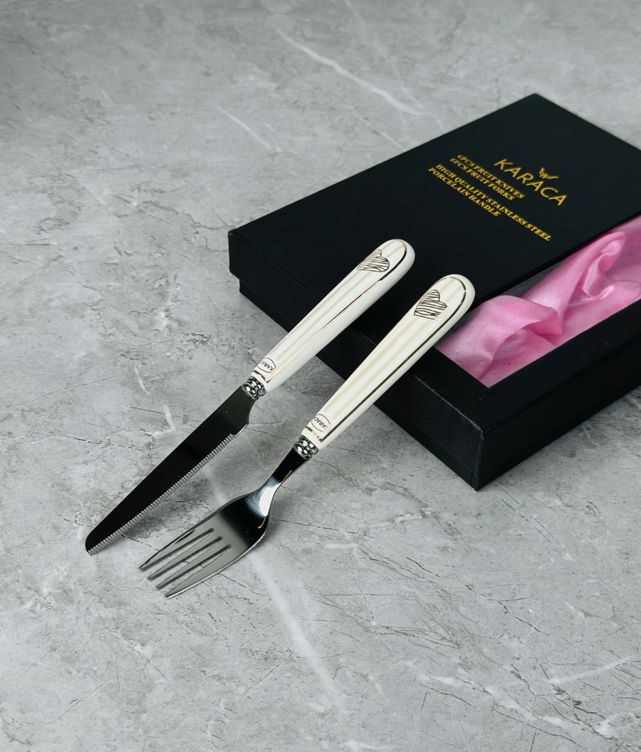 سيت 6 سكين و 6 شوكة يده سيراميك نقش A81