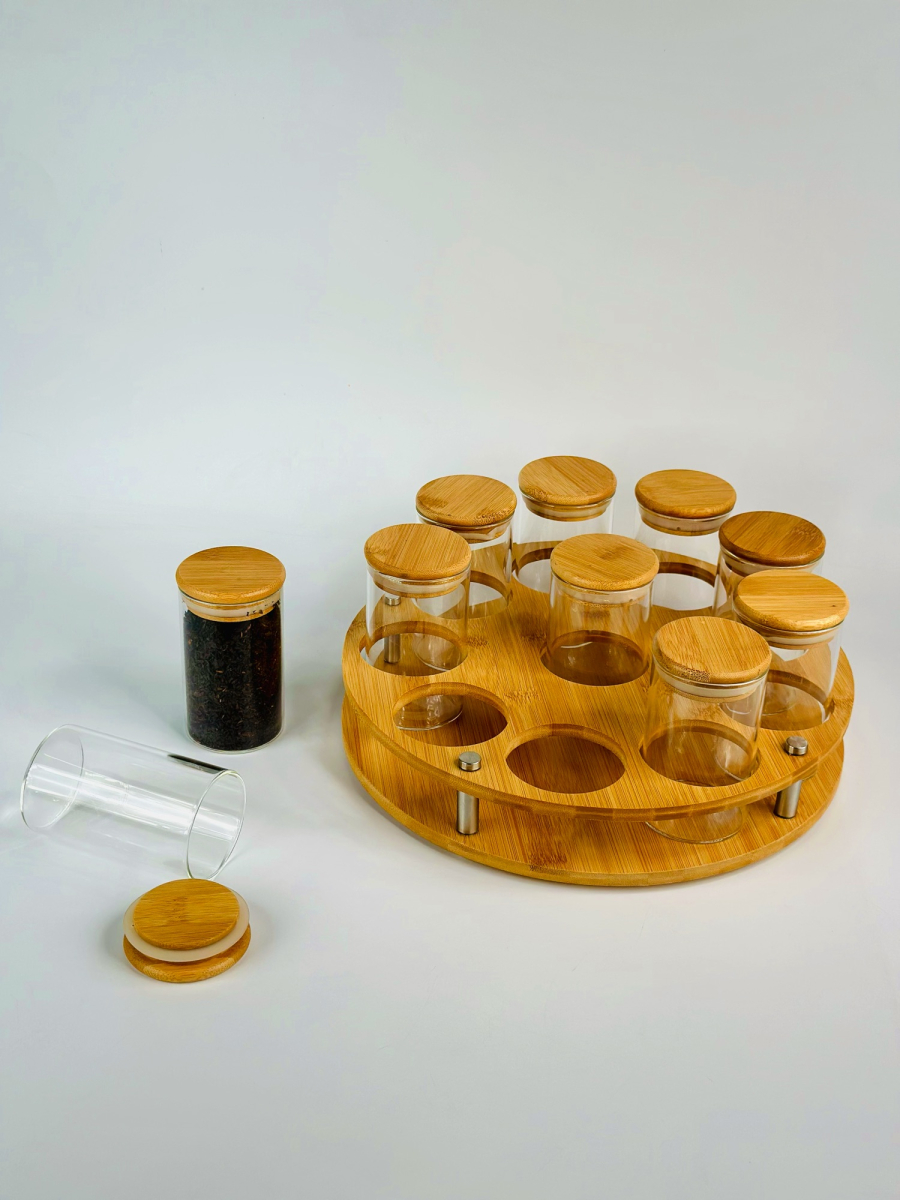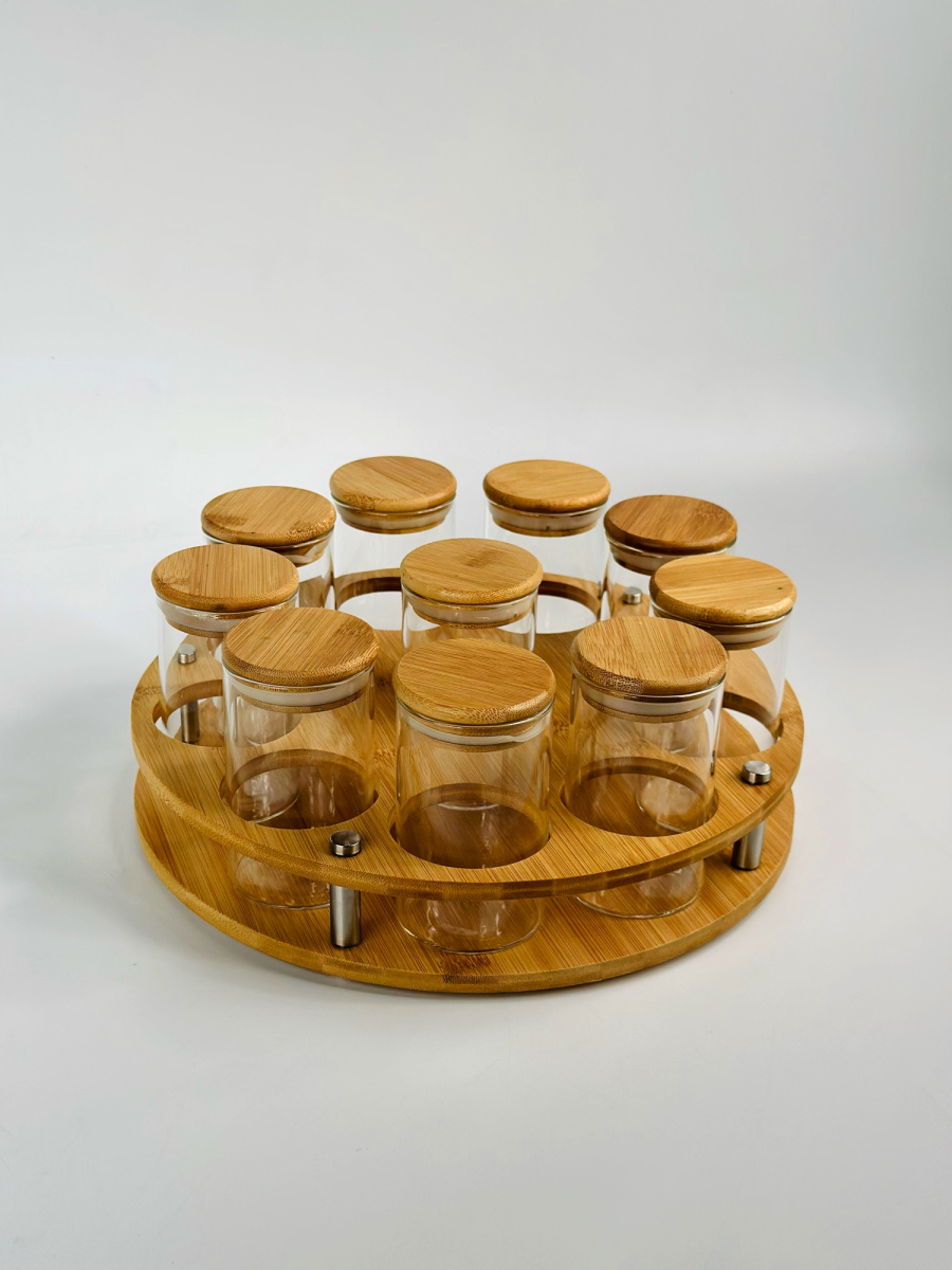 طقم علب بهارات ١٠سم و صيني بامبو