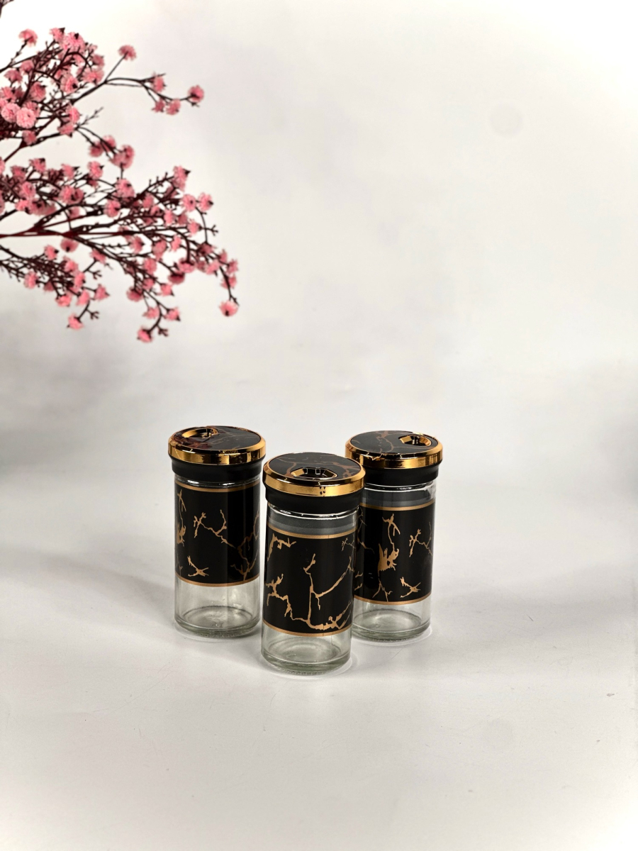 علب بهارات زجاج ارتفاع 8سم قطر 6.5سم