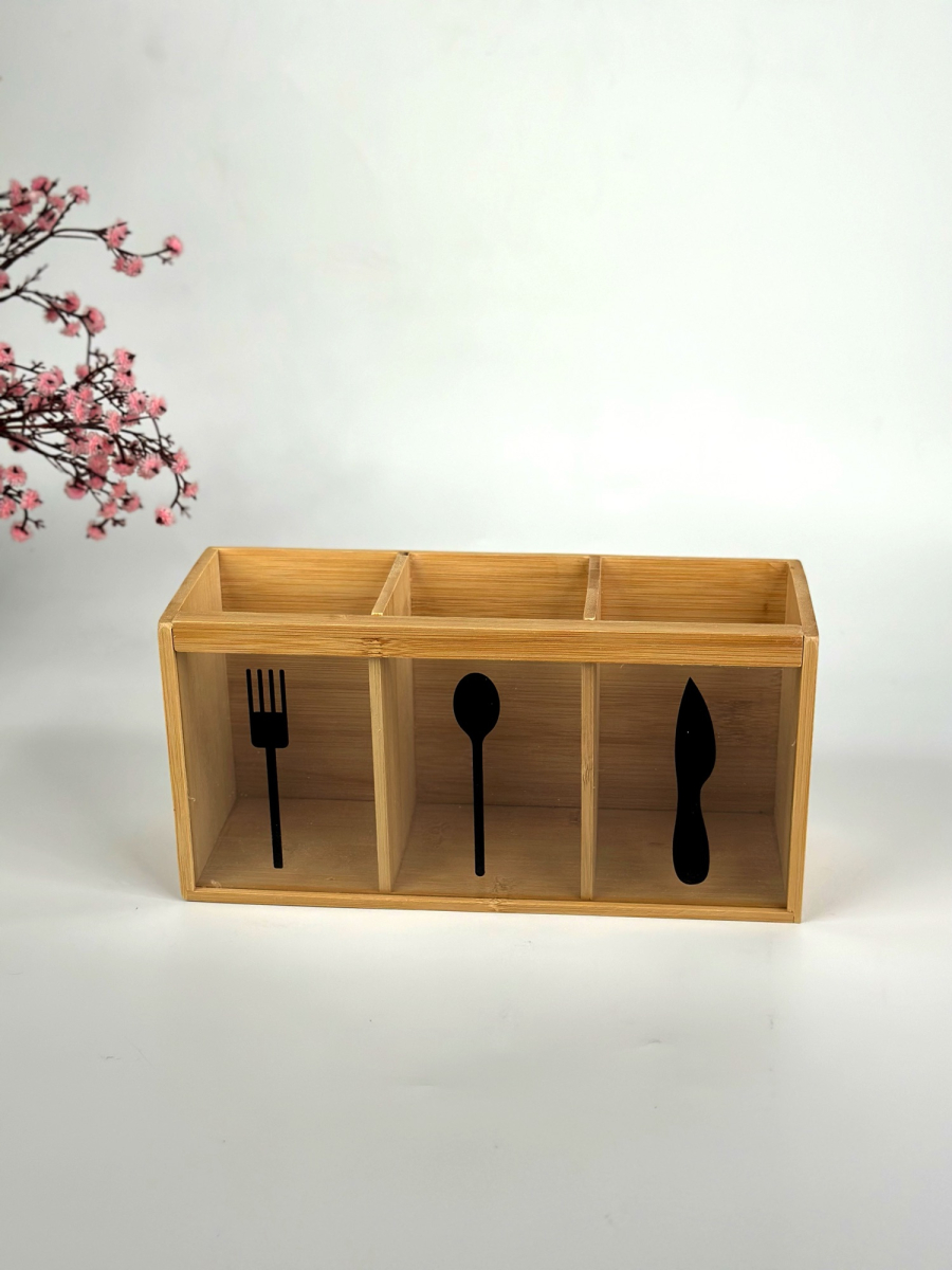 مکان ملاعق بامبو مستطیل وجە اکرلک 3 خانات
