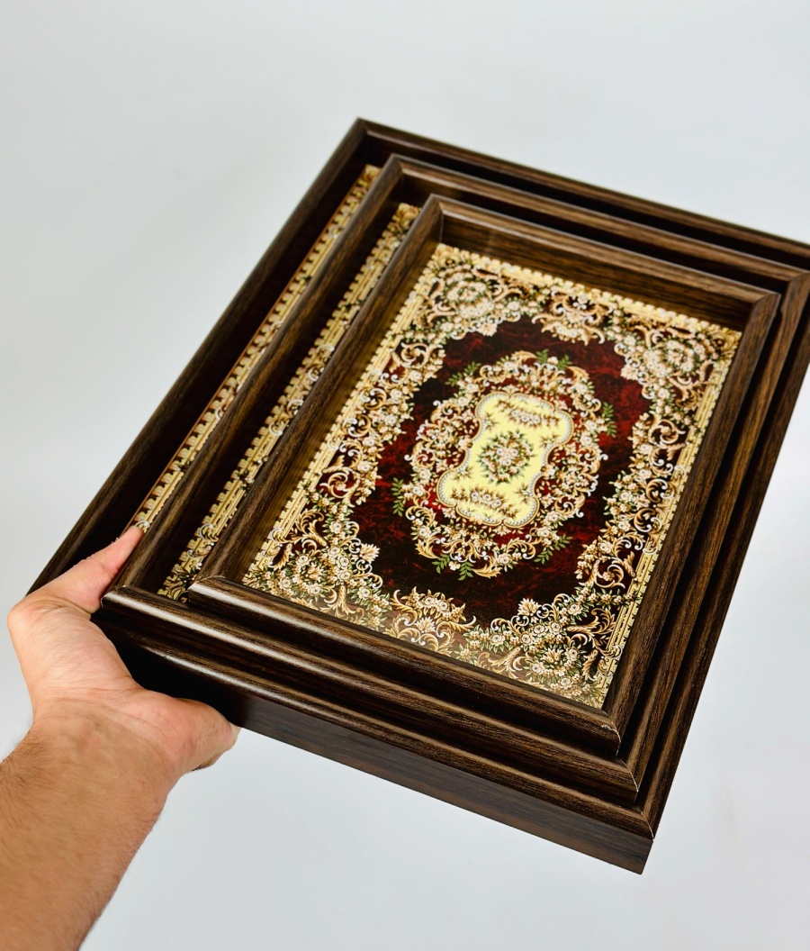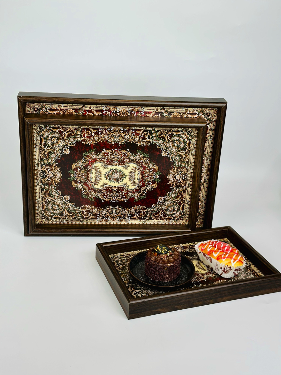 طقم صيني خشب بامبو ثلاثي نقش E-17 قهوائي