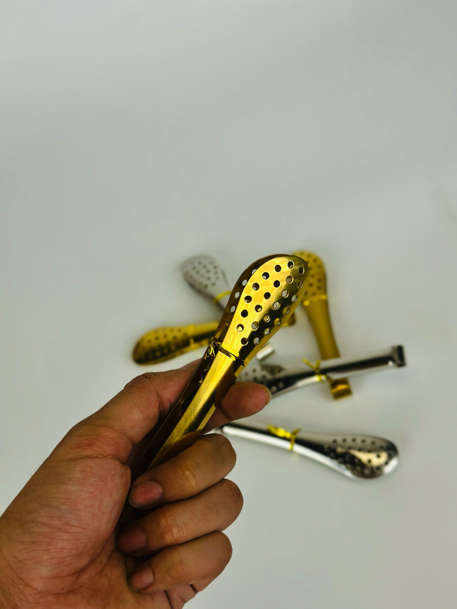 مصفاة شايي يد زجاج ابيض،ذهبي،فيضي