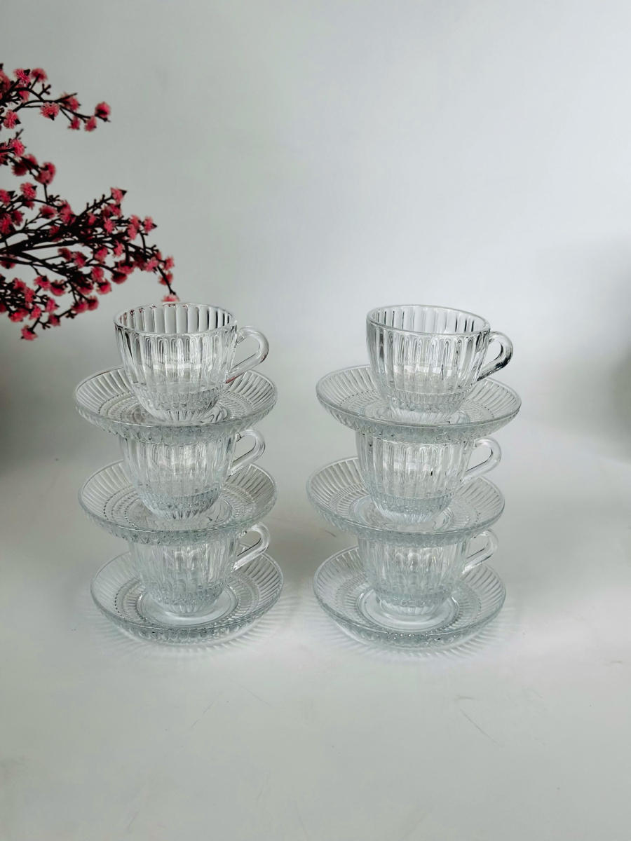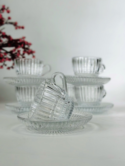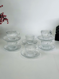 طقم 6 عدد کاسە کاستر کبیر عميق زجاج اطار ذهبي V-25