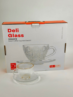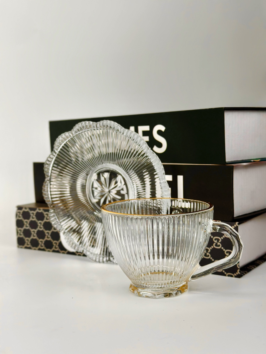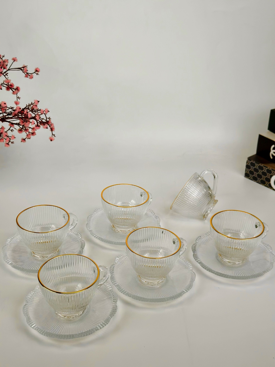 طقم اكوب و صحن اطار ذهبي زكزاك 6عدد