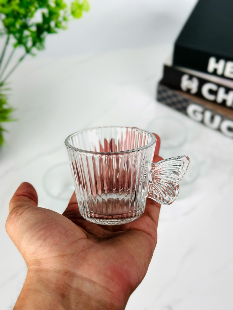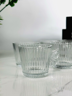 طقم سكر وشايي زجاج قبق خشبي رباعي