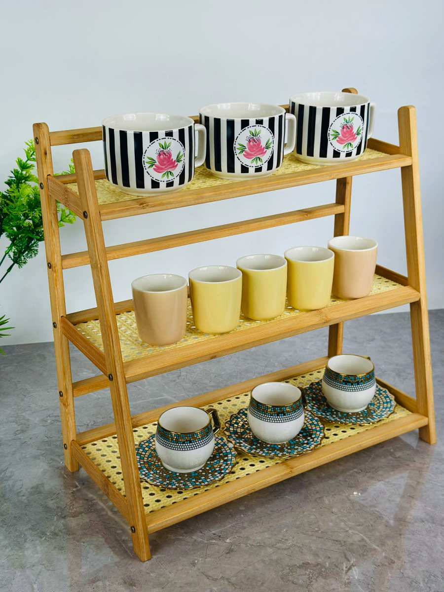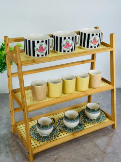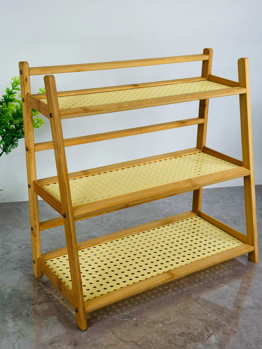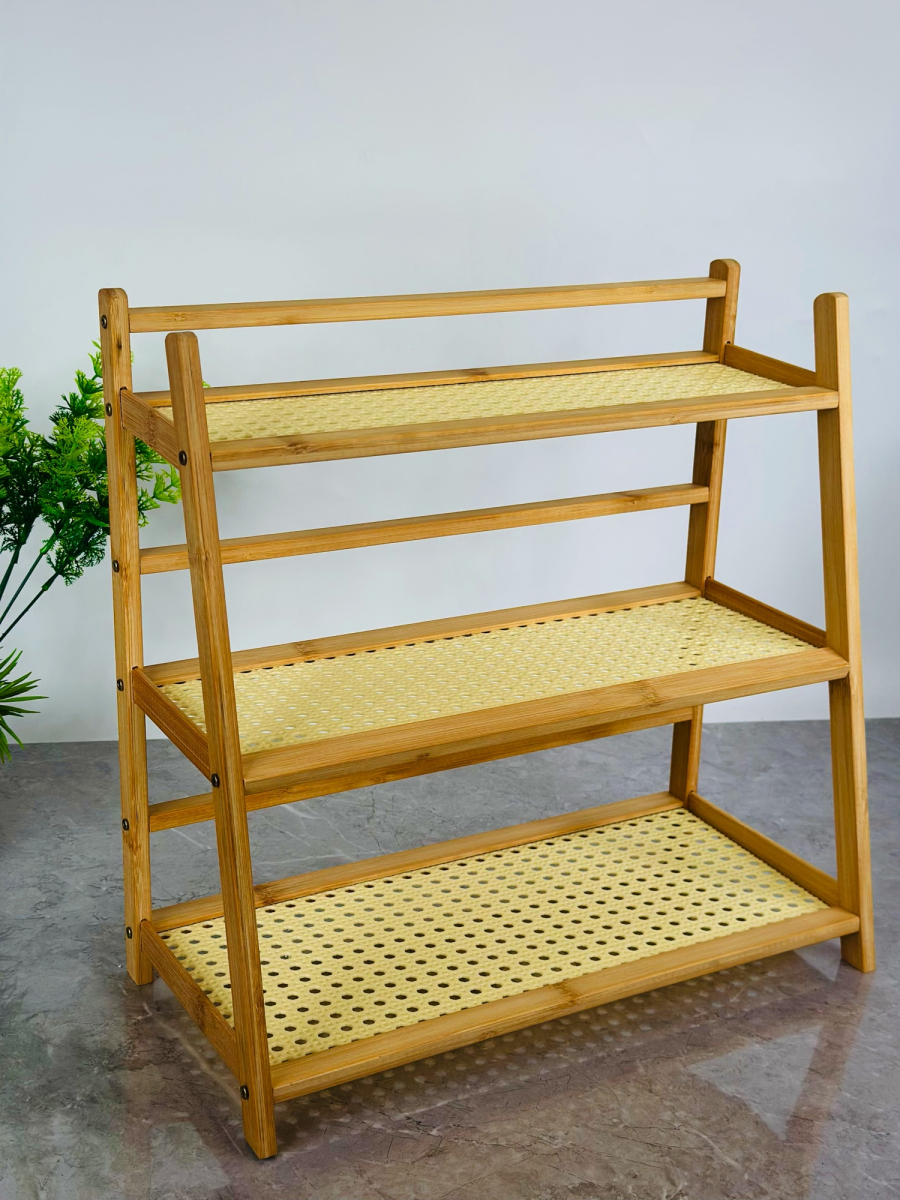 رف منظم بامبو ثلاث طبق بلاستيك شكل خوص کبیر 40*40*20سم