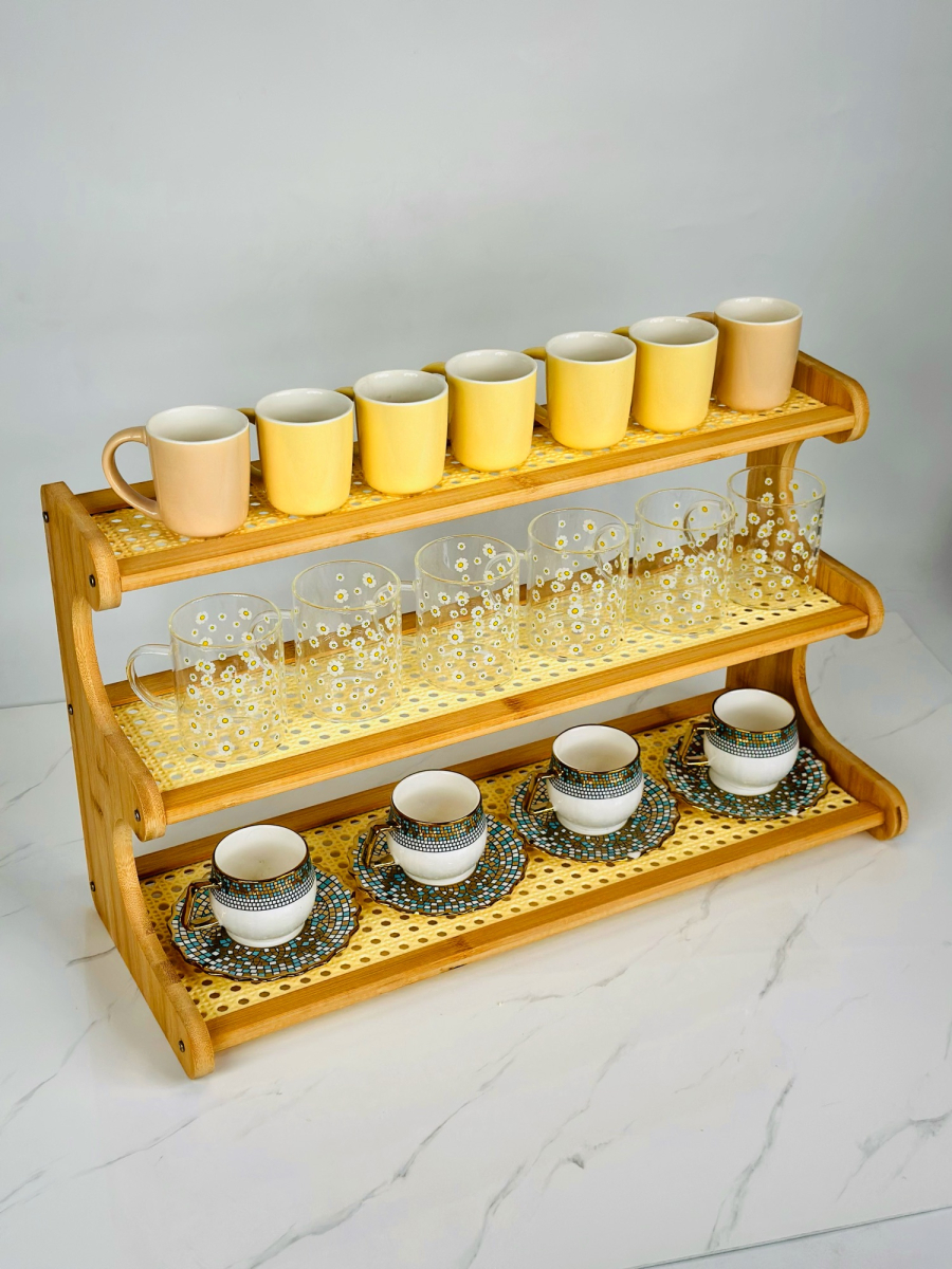رف منظم بامبو ثلاث طبق کبیر جديد 51*30*21سم