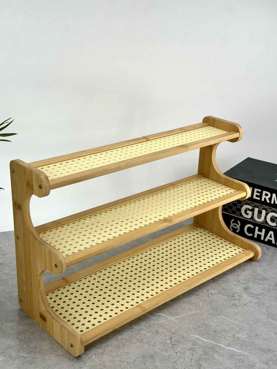 رف منظم بامبو ثلاث طبق کبیر جديد 51x30x21سم