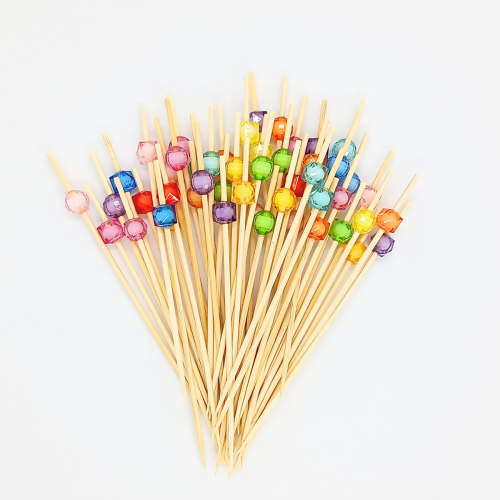 اعواد تمر وحلى خشب بمقبض خرز ملون 50 عدد مشکل