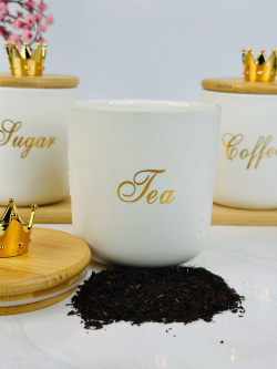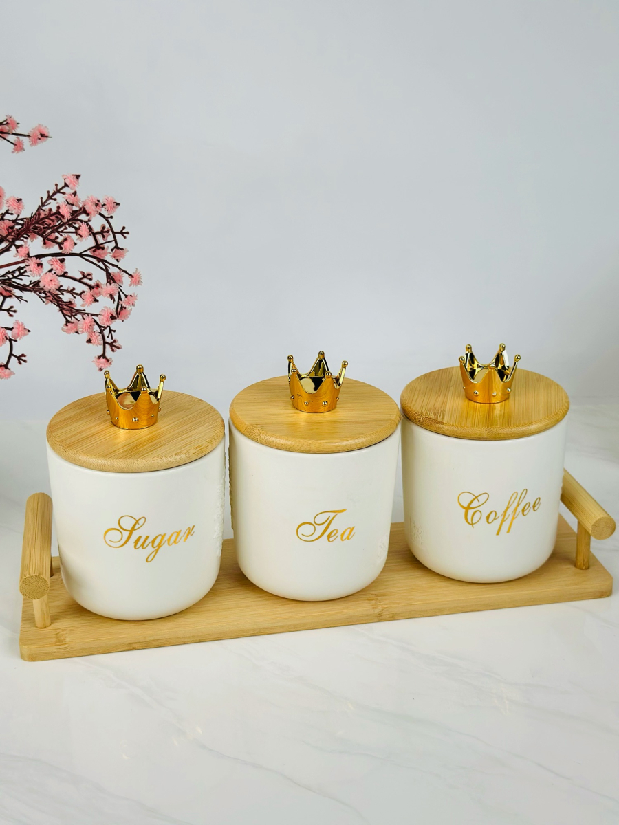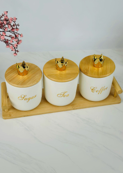 طقم سكر وشايي مع قاعدة بامبو رأس تاج