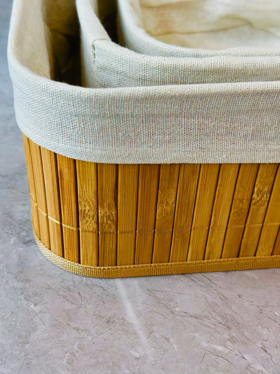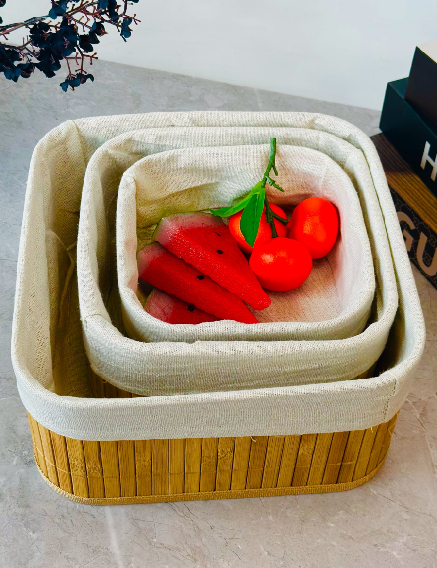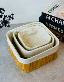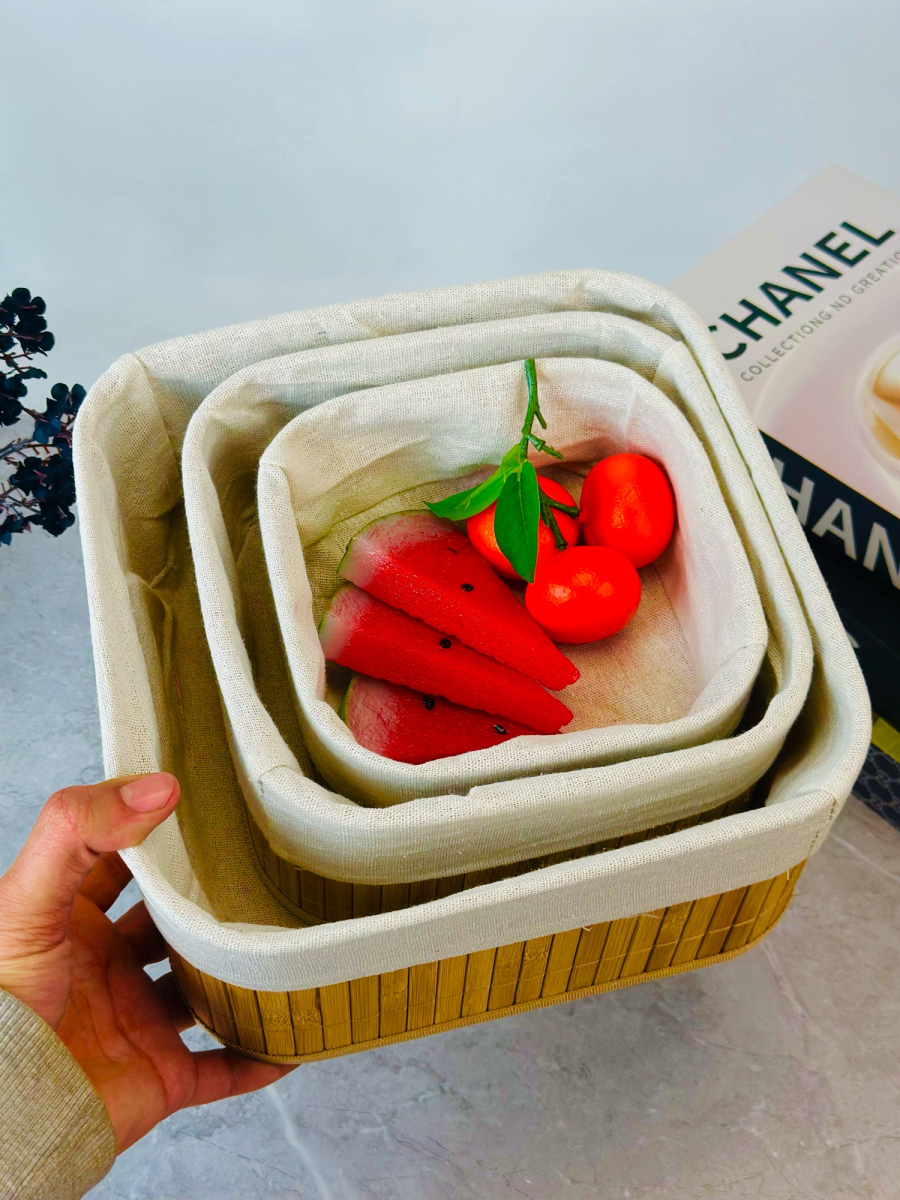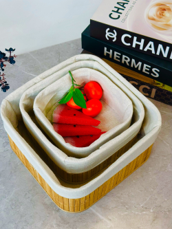 سيت سلة 3 عدد بامبو و اقمشة مربع