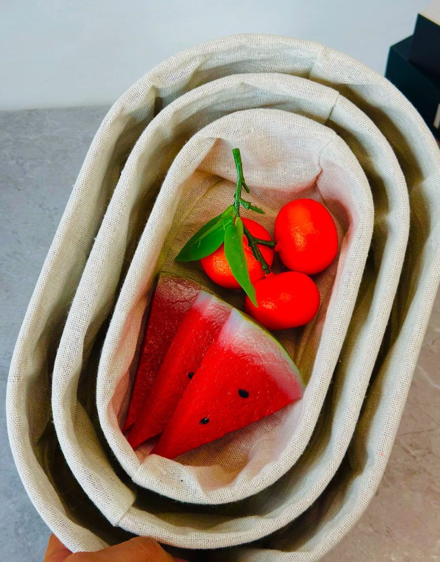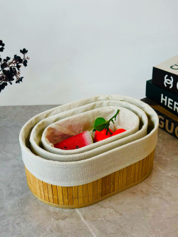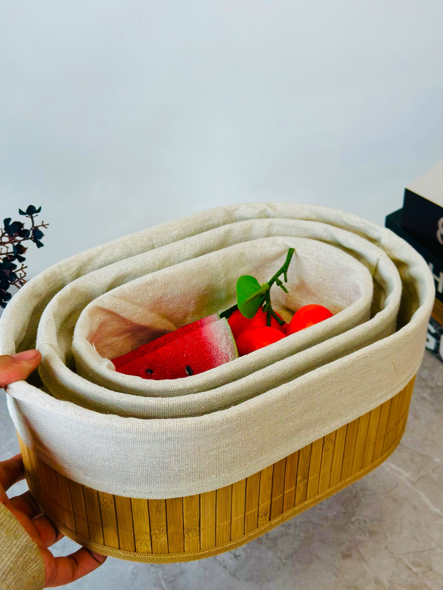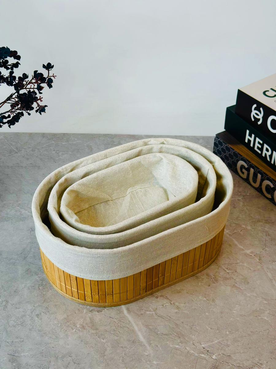 سيت سلة 3 عدد بامبو و اقمشة بيضوي