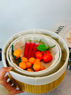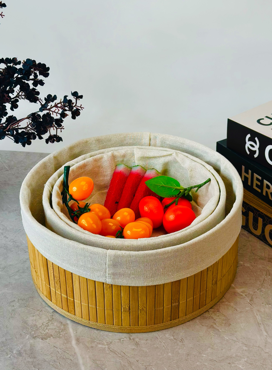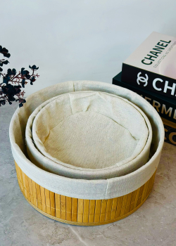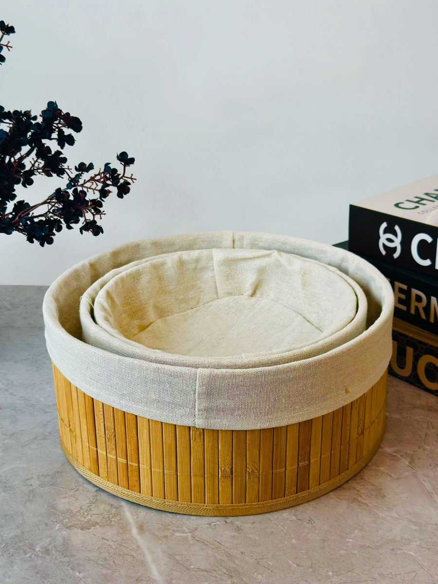 سيت سلة 3 عدد بامبو و اقمشة دائري