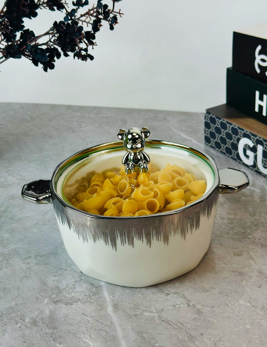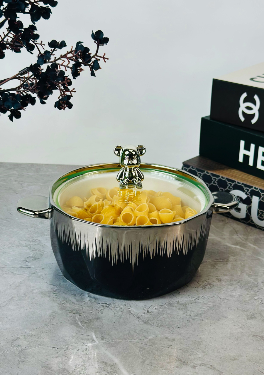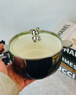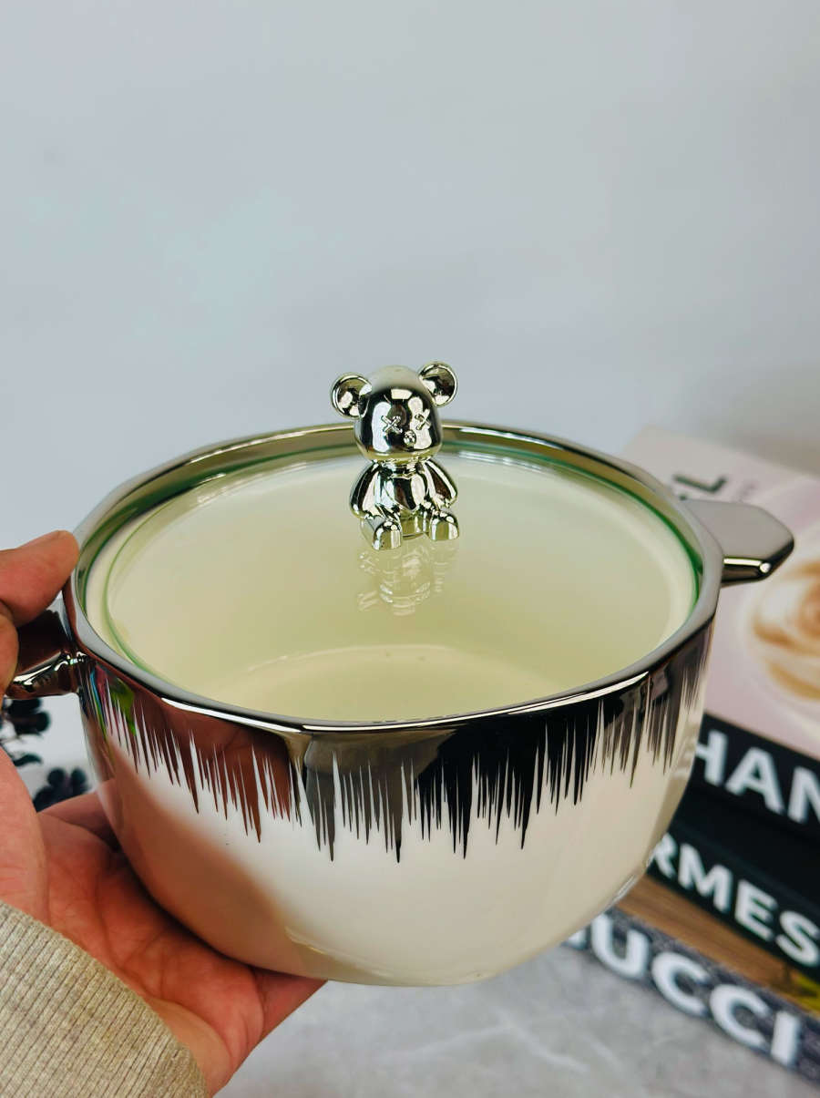 جدرية سيراميك قبق دب اسود و ابيض و اطار ذهبي