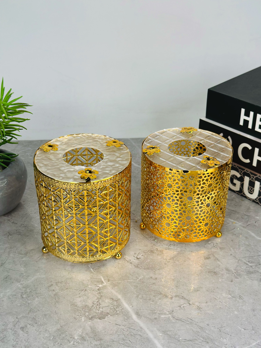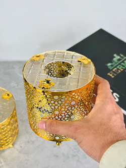 علب اکرلک سكر و بقوليات دائري 9سم قطر 10سم قبق مرمر ذهبي