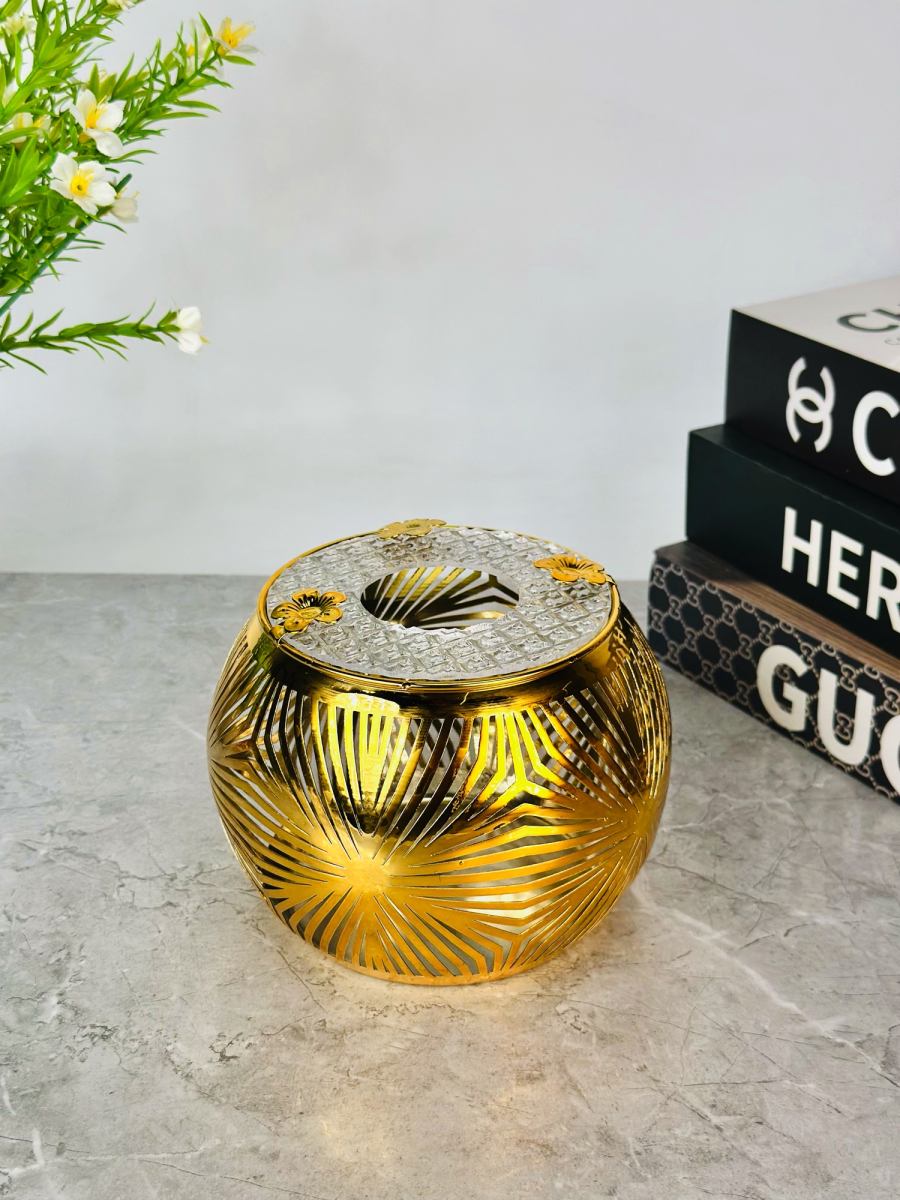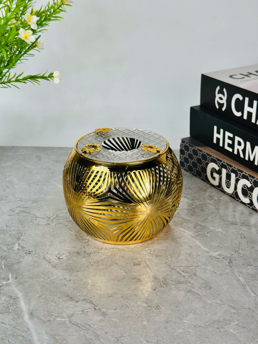 علب كلينس دائري ذهبي زخرفة 9 سمن